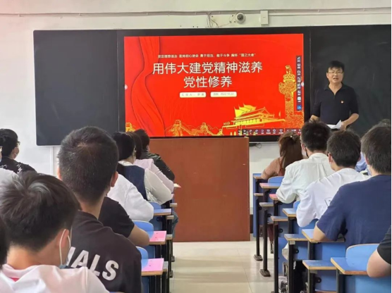首先由机电工程学院党总支书记罗斐进行党课讲话。罗书记以“用伟大建党精神滋养党性修养”为题讲授“微党课”。讲话中,罗书记提到中共二十大的召开,它是迈上全面建设社会主义现代化国家的新征程,是向第二个百年奋斗目标进发的新起点。为此,我们要提高自己的党性修养,以全新的姿态向第二个百年奋斗目标前进。而作为中共党员,伟大的建党精神无疑是滋养党性修养的最好“营养物”。藉此,罗书记向全体党员提出以下四点要求: