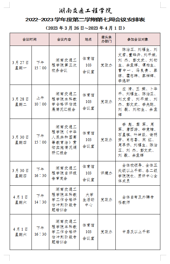 新葡萄8883官网AMG官网2022-2023学年度第二学期第七周会议安排表