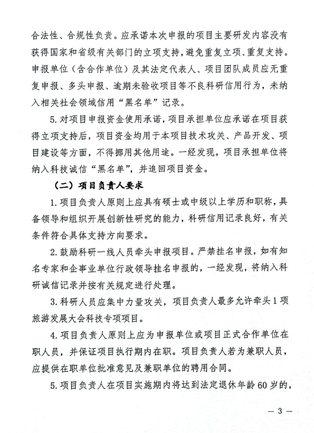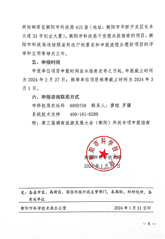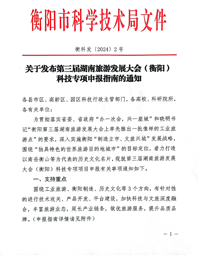转发:第三届湖南旅游发展大会(衡阳)科技专项申报指南通知 来源: STB 发布时间:2024-02-22 浏览次数:[9272] 次 附件: 第三届湖南旅游发展大会(衡阳)科技专项申报指南通知.pdf 【打印正文】 上一篇: 关于申报2024年“芙蓉计划”——高校优秀思想政治工作者项目的通知 下一篇: 2024年度湖南省教育科学“十四五”规划课题推荐结果公示