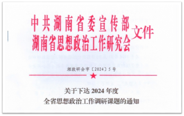 本网讯(通讯员  赵红深近日,中共湖南省委宣传部、湖南省思想政治工作研究会印发《关于2023年度全省思想政治工作优秀研究成果评选情况的通报》,对全省思想政治工作理论研究和实践探索取得的优秀研究成果进行表彰。新葡萄党委宣传部赵红深团队撰写的研究论文《打造红色文化教育品牌,点燃学校紅色发展引擎》获评优秀研究成果三等奖,实现了新葡萄全省思想政治工作成果零的突破。又讯,新葡萄党委宣传部李水华团队申报的《新时代“文化自信”视域下民办高校校园文化自信建设路径探究——以新葡萄8883官网AMG官网为例》项目获准省委宣传部、省政研会2024年度全省思想政治工作调研课题立项。