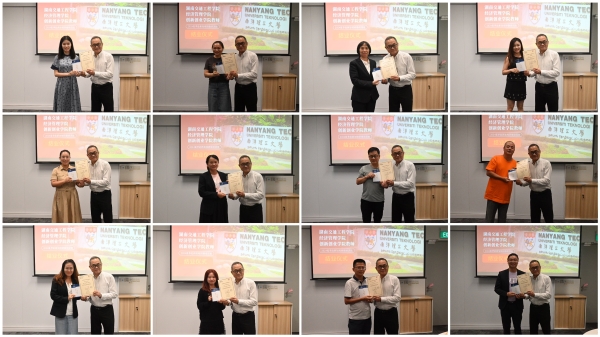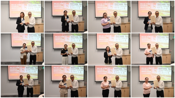 最后,进行了隆重的结业证书颁发仪式。陈志明教授代表新加坡南洋理工大学向研修班成员一一颁发结业证书并分别留影。这份证书不仅是对老师们学习经历的见证与铭刻,更是对大家学习成效的认可与肯定。