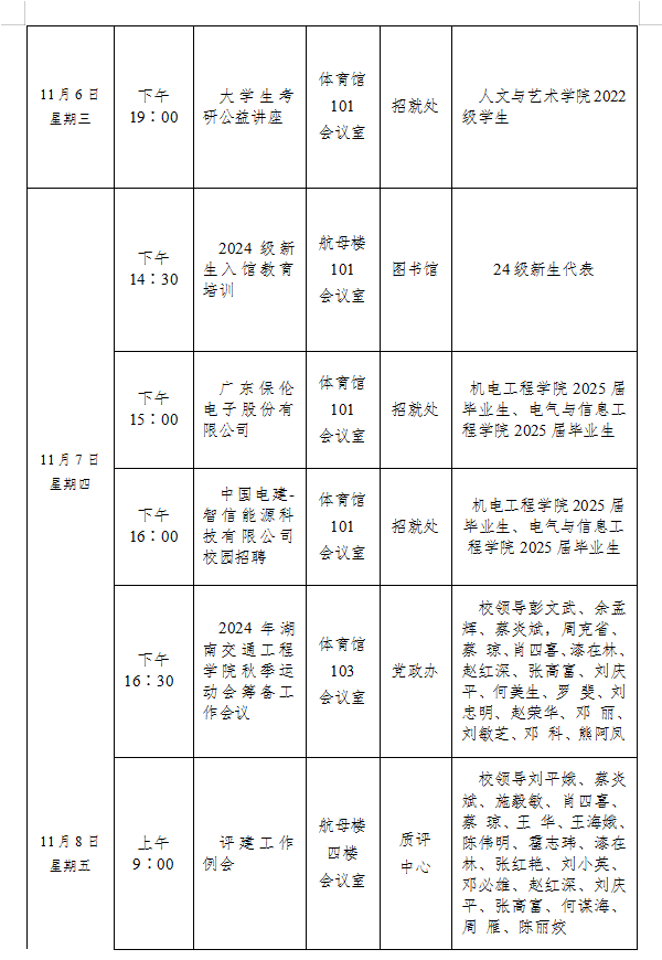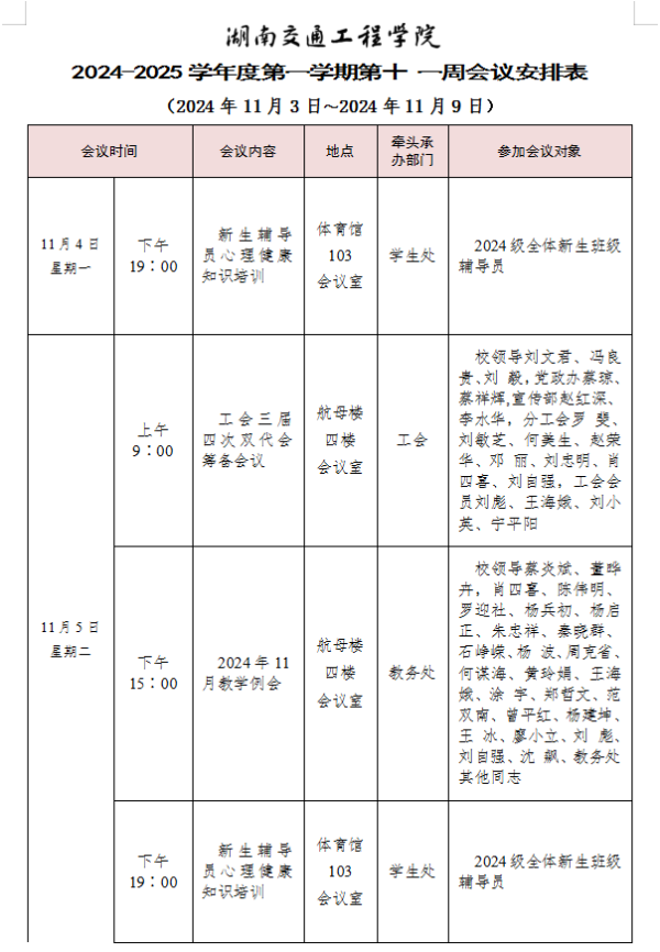 新葡萄8883官网AMG官网2024-2025学年度第一学期第十一周会议安排表