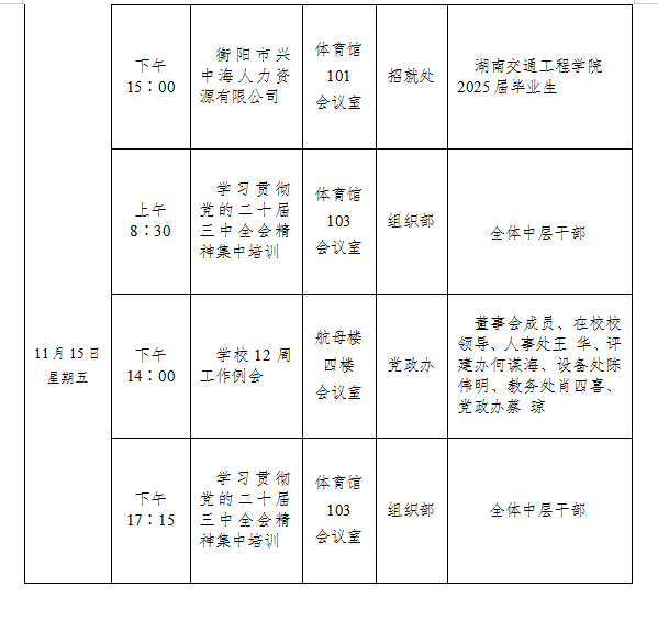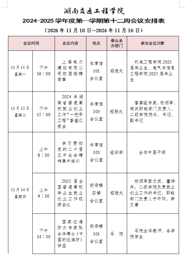 新葡萄8883官网AMG官网2024-2025学年度第一学期第十一周会议安排表