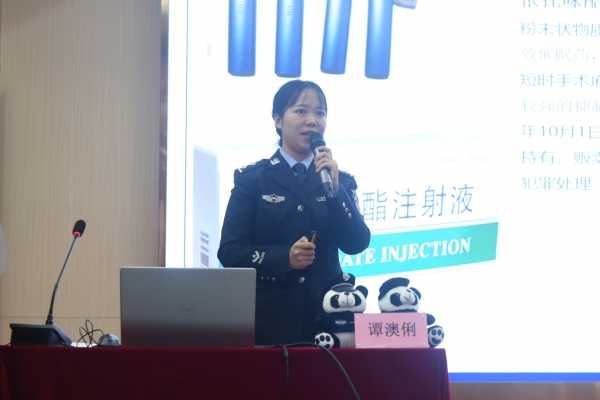 谭澳俐以“避雷‘毒坑’,它可能‘药’你命”为题,通过现场互动式提问,从什么是毒品、毒品的种类、毒品的危害、怎样拒毒防毒等方面为新葡萄师生上了一堂生动的毒品预防教育课。她详细阐述了滥用例如依托咪酯、右美沙芬等药品的危害,并通过发生在身边的真实案例,展示了青少年吸食传统毒品以及新型毒品造成的严重后果,呼吁师生养成良好的习惯,提高识毒、防毒、拒毒能力,增强自我保护意识。最后,她带领全体到场师生起立宣誓禁毒誓词。