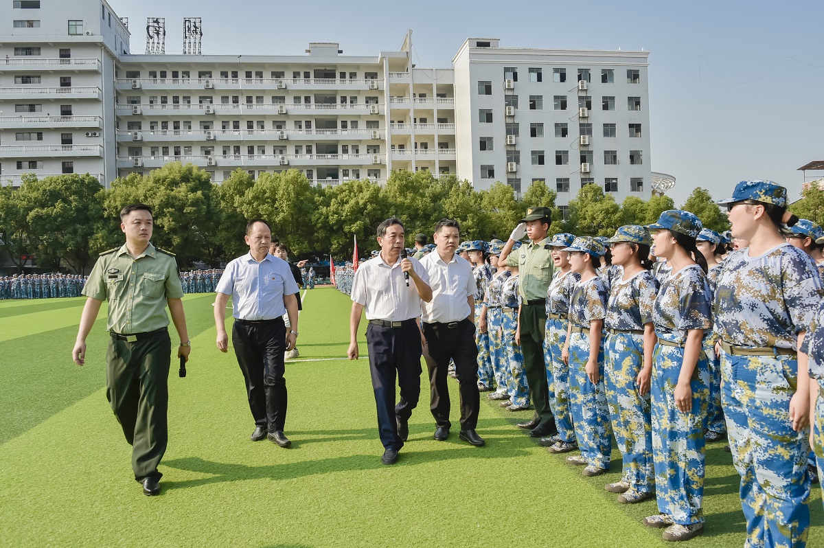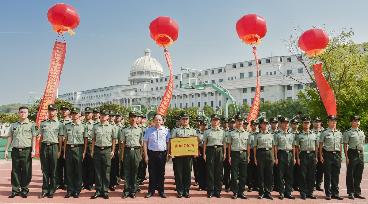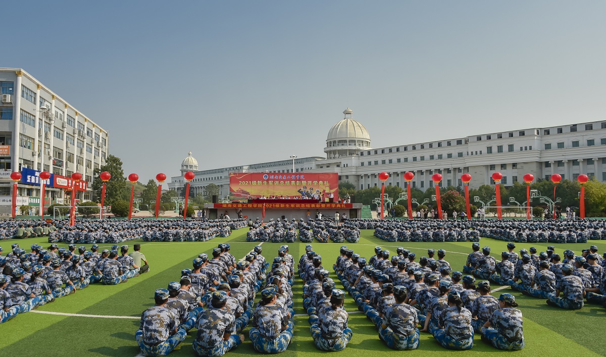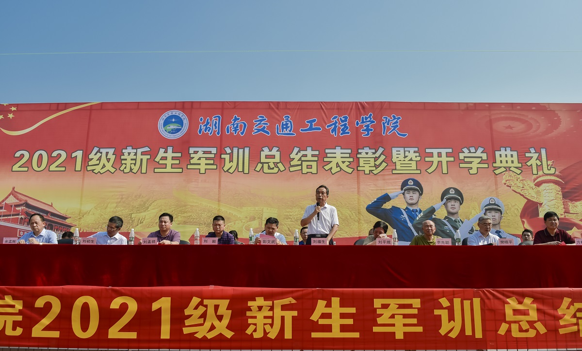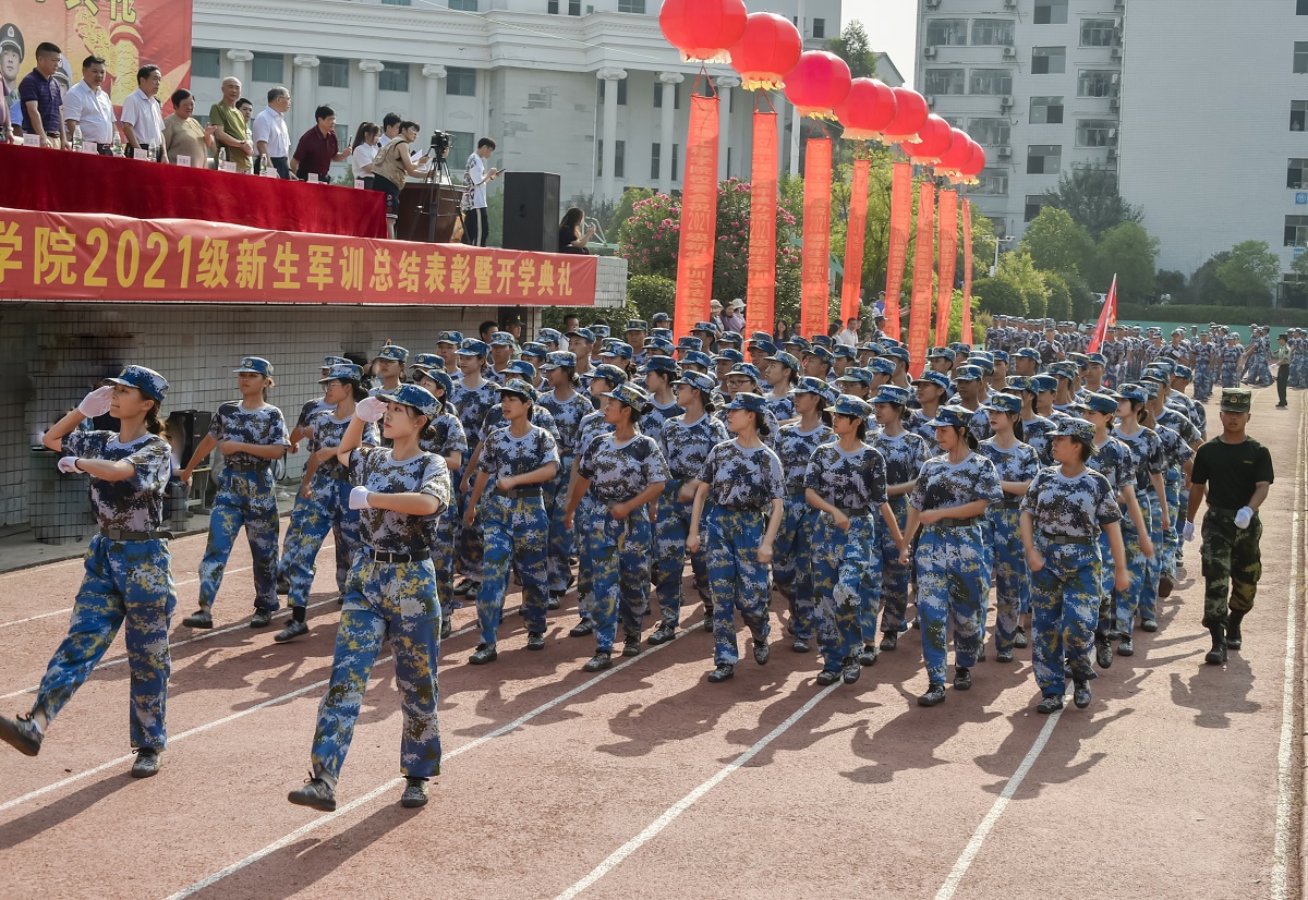本网讯( 记者 赵红深 摄影 李建华 )青春正当时,沙场秋点兵。经过两周的艰苦训练,2021级新生圆满完成了军训任务。9月17日上午,学校在田径运动场隆重举行2021级新生军训成果汇报表彰大会暨开学典礼。董事长刘福生、名誉校长刘平娥、常务副校长彭文武、党委副书记李先聪、纪委书记刘毅,副校长刘孟祥、樊晓平、刘初生、余孟辉,校长助理方彰训出席。相关职能处室负责人,各二级学院院长、党总支书记(副书记),全体教官、辅导员和教师代表以及4000余名2021级新生参加了典礼。典礼由樊晓平主持。