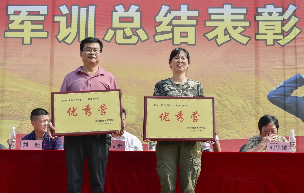 此次军训涌现出一批优秀学员和优秀教官,余孟辉宣读了“关于表彰2021年新生军训先进集体和优秀学员的决定”。决定授予四营、五营为2021年军训先进营,授予一营一连等10个连为2021年军训先进连;授予高墁等20位教官为2021年军训优秀教官;授予鲁维军等10位同志为2021年军训优秀指导员;授予李希瑞等182位同学为2021年军训标兵;授予老兵连为2021年军训特殊贡献奖。