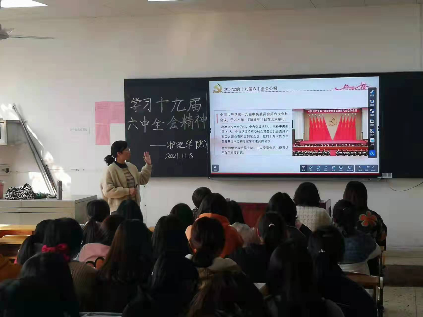 为更好了解党的十九届六中全会精神1118午,护理学院在教学楼202教室举行专题学习党的十九届六中全会精神活动护理学院党总支书记邓丽党总支副书记兼团总支书记肖桂香护理学院教师和学生代表出席了本次会议本次会议由邓丽书记主持