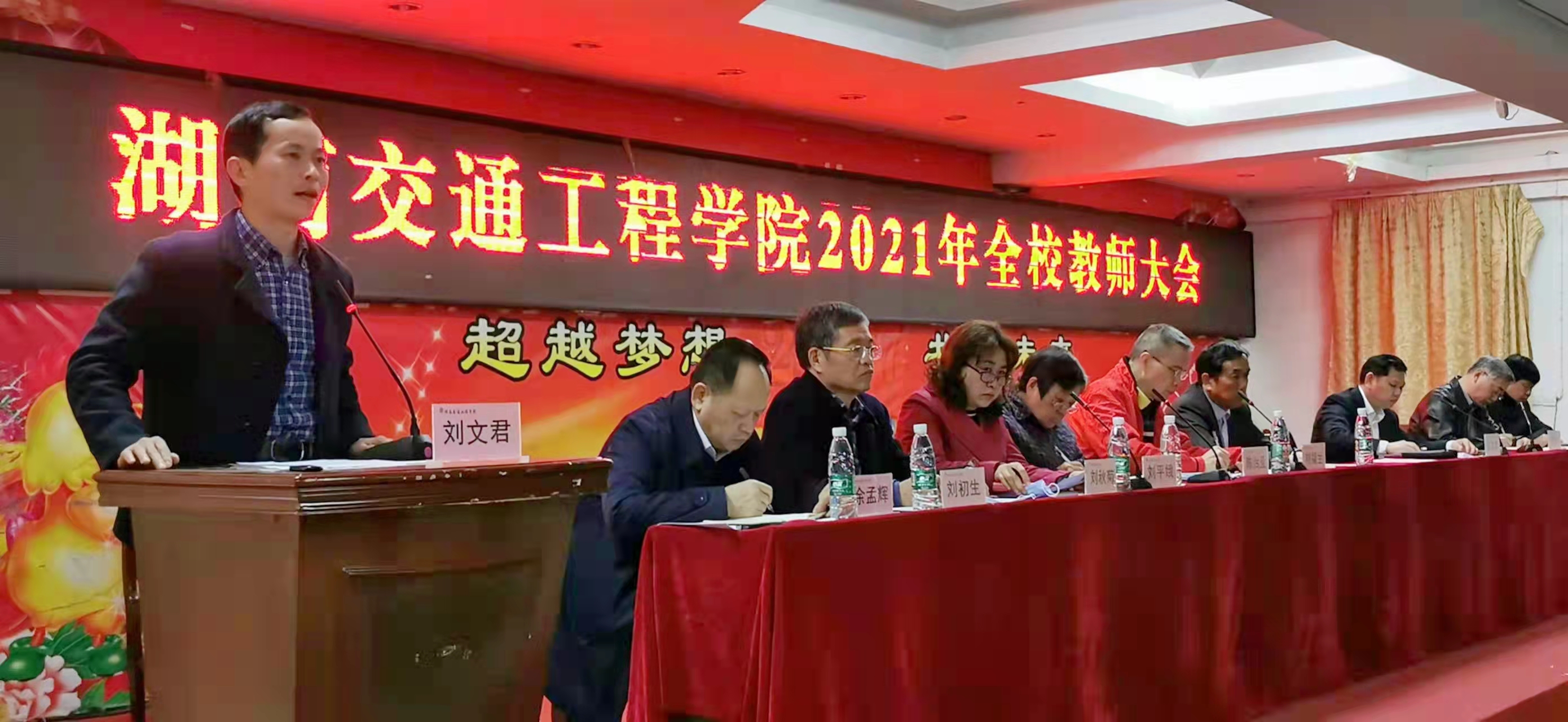 本网讯(记者 摄影 赵红深 实习记者 邓江林 刘文鑫)为全面贯彻教育部落实巡视整改要求,进一步修订完善课堂教学管理有关规定,加强课堂建设和管理,发挥好课堂教学的人才培养主渠道主阵地作用,切实提高教育教学质量,12月9日下午,学校在体育馆101会议室召开2021年下学期教师大会,全体校领导出席会议,常务副校长彭文武主持。