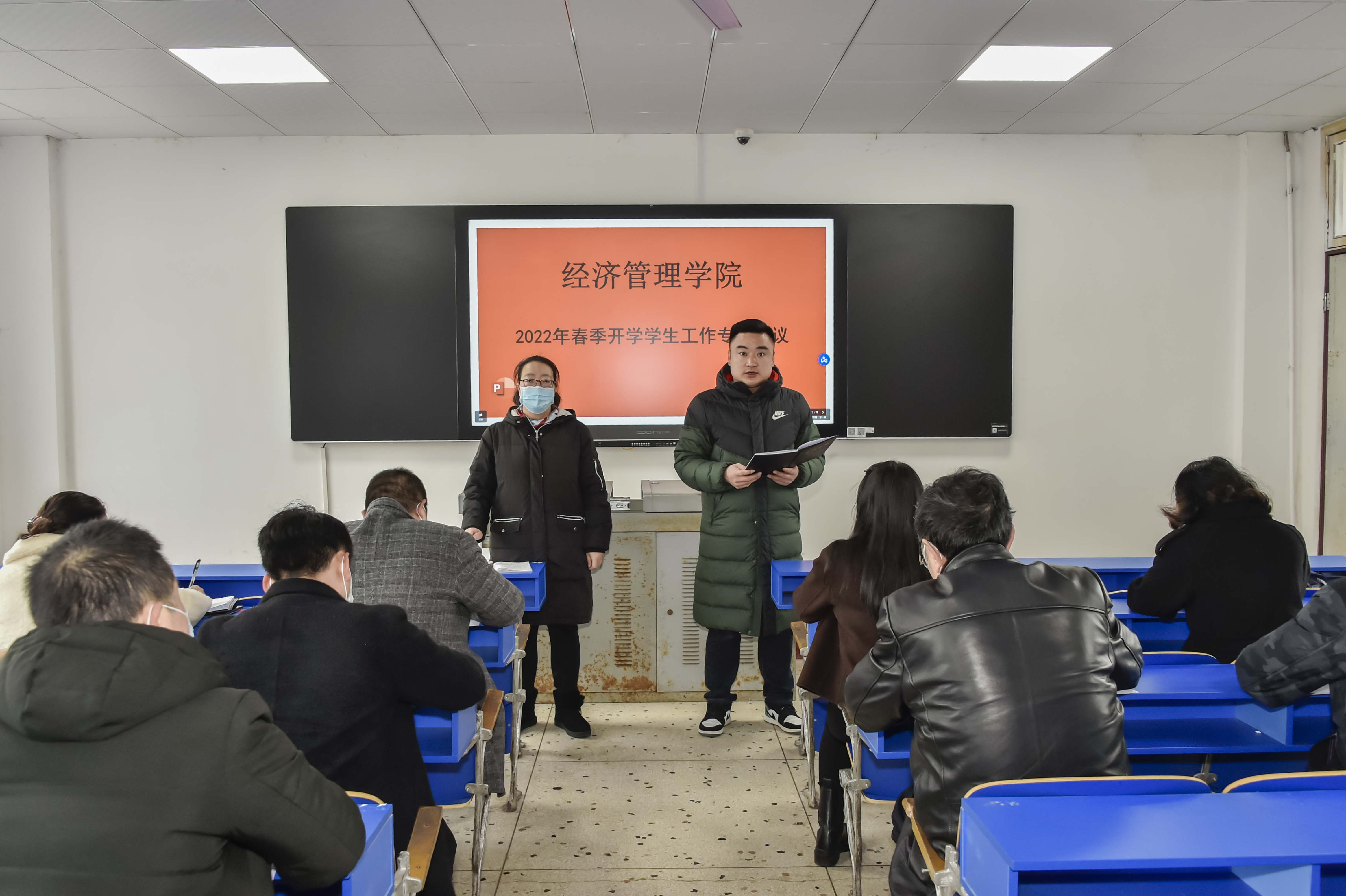▲ 经济管理学院书记赵荣华、副书记罗朝勇主持召开辅导员会议