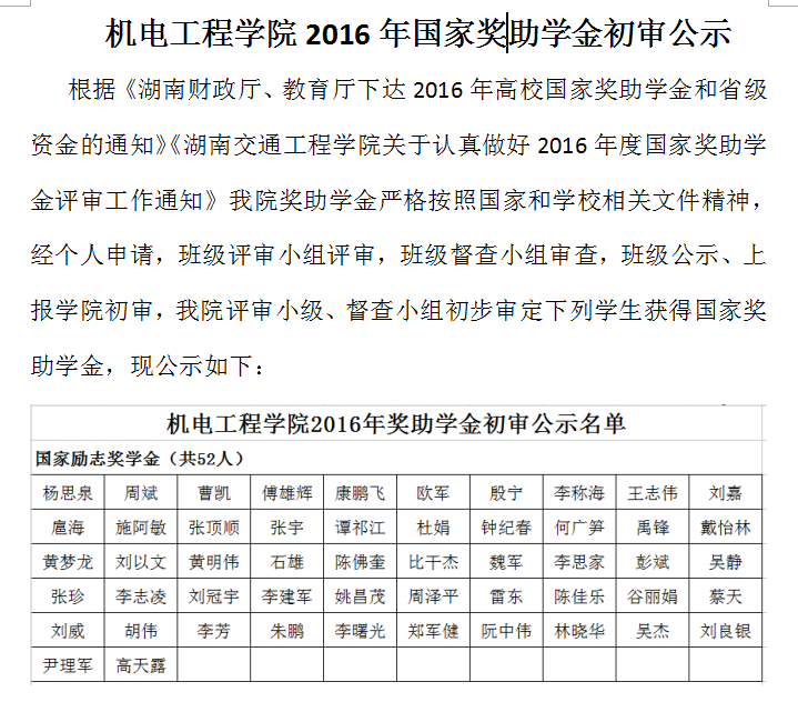 机电工程学院2022届省级优秀毕业生拟推荐名单公示