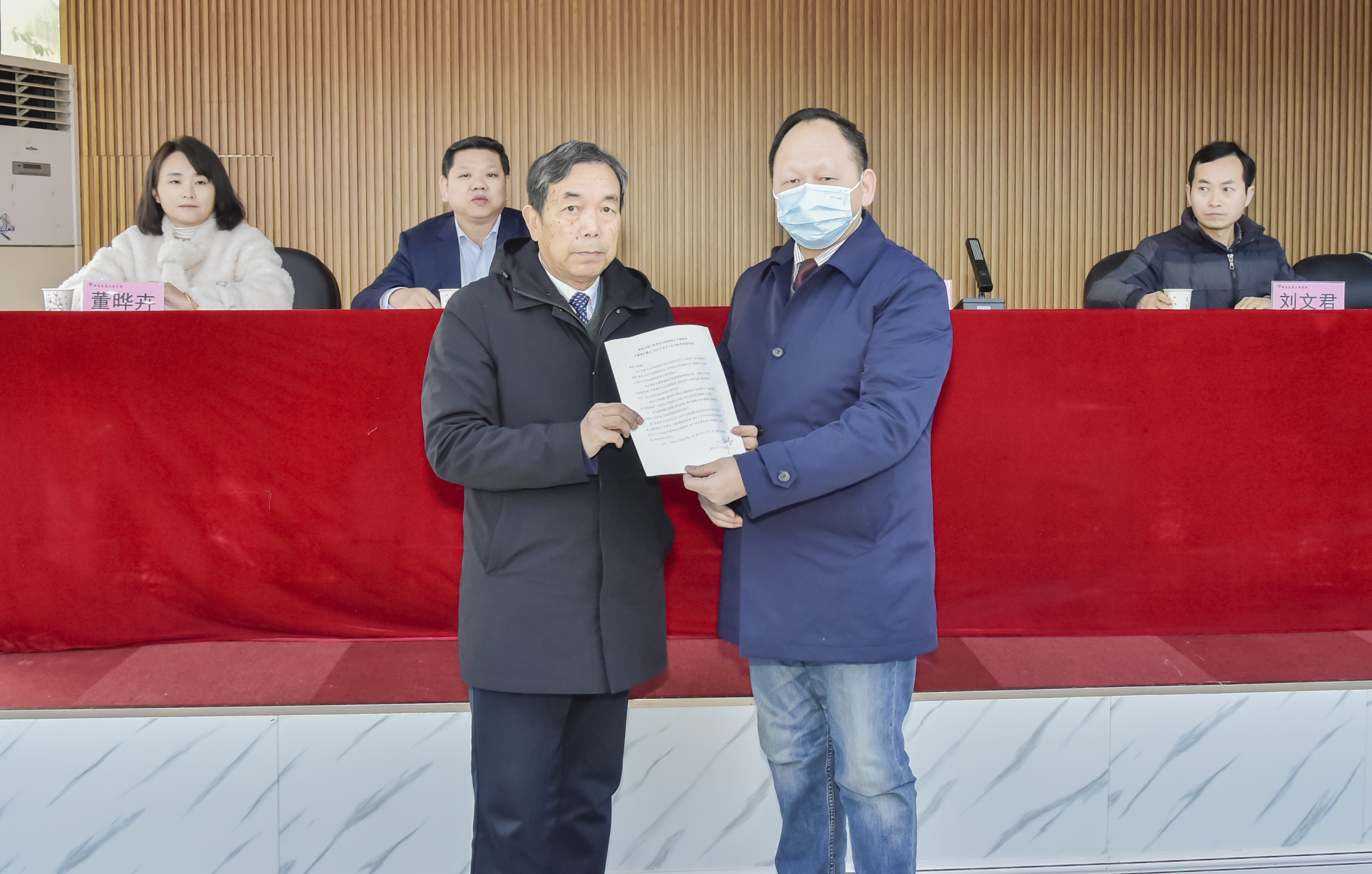 ▲ 各二级学院书记向主管副校长余孟辉递交综合治理安全管理责任状