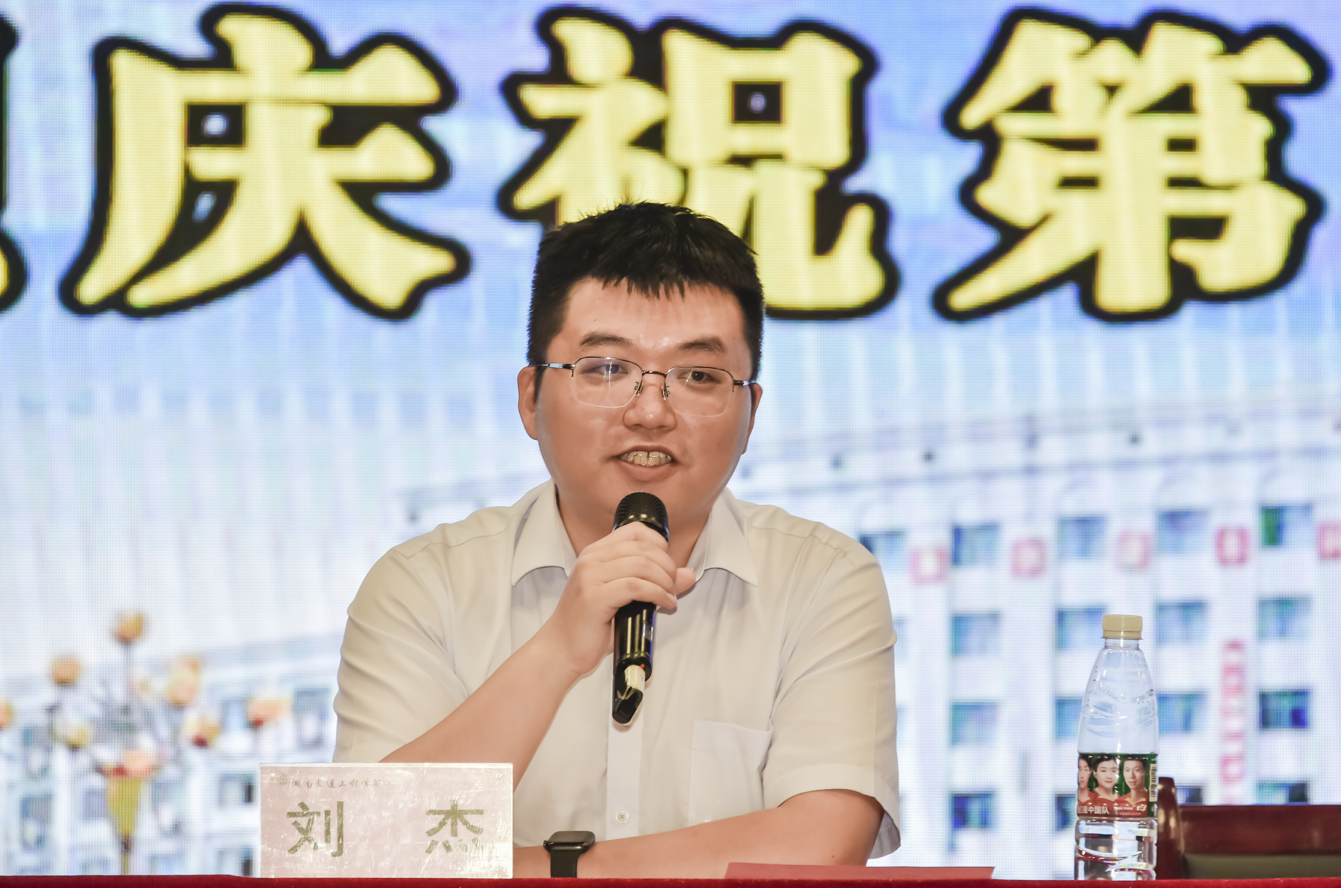 机电工程学院贺沅玮老师代表优秀教师发言。他对学校领导与同事一直以来对自己的关怀与帮助表示感谢,畅谈了在学校教学科研工作中获得的成绩和感悟,表示将继续以饱满的热情、昂扬的斗志战斗在工作的最前沿,为学校本科教学合格评估和建设发展贡献力量。