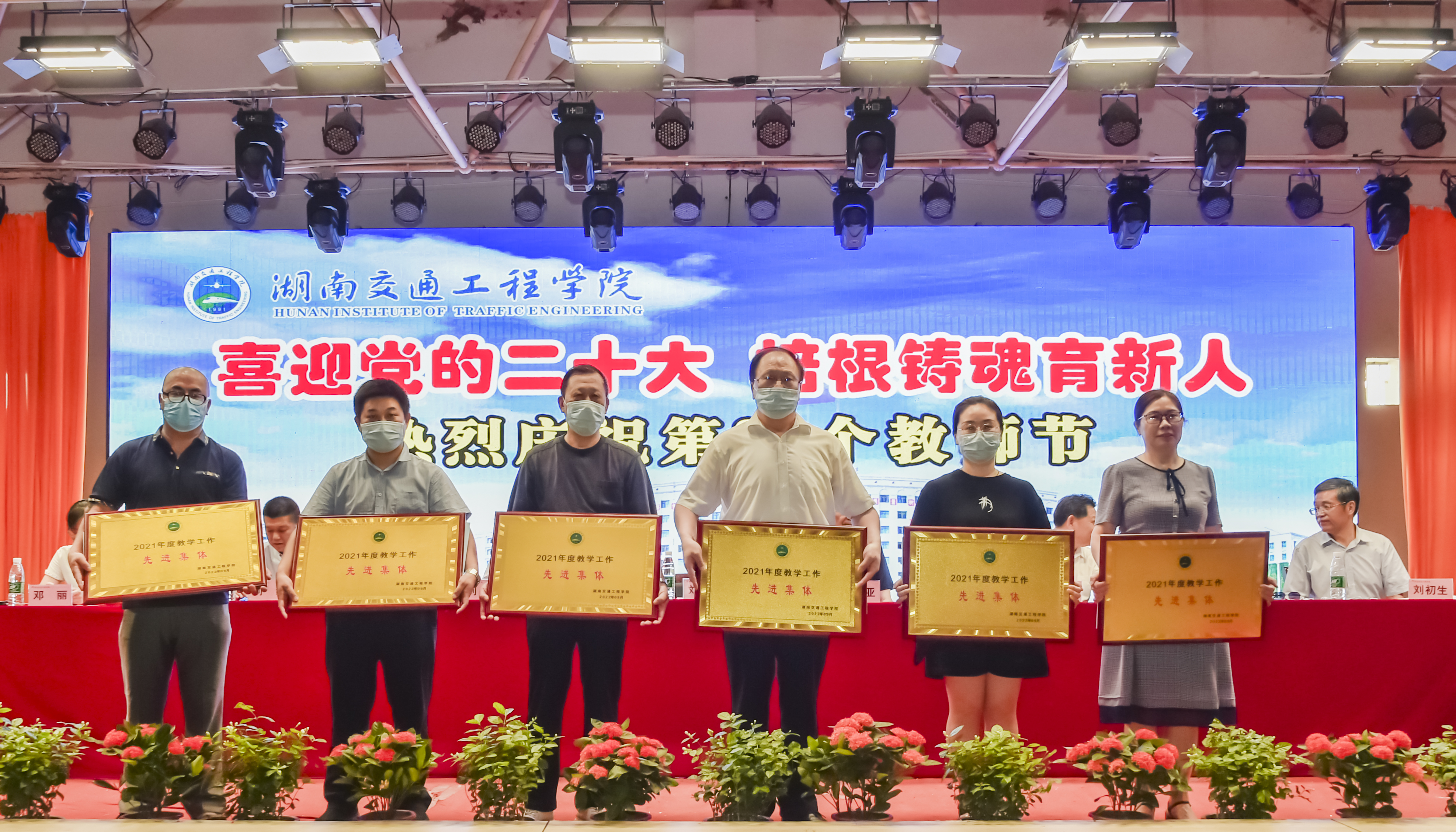 会上,常务副校长彭文武宣读了9个表彰决定: 2021年度先进教学工作单位的表彰决定;2021-2022学年优秀教师、优秀教育工作者的表彰决定;2021年度考核先进集体和先进个人的表彰决定;省级一流课程一流专业的表彰决定;2022年省级教学成果奖的表彰决定;“说专业”“说课程”决赛结果与奖励决定;课堂教学质量优秀奖表彰决定;毕业论文(设计)优秀指导老师表彰决定;《新葡萄8883官网AMG官网关于发放2021-2022年度科研成果奖励的决定》。校领导分批次为获奖集体和个人颁奖。