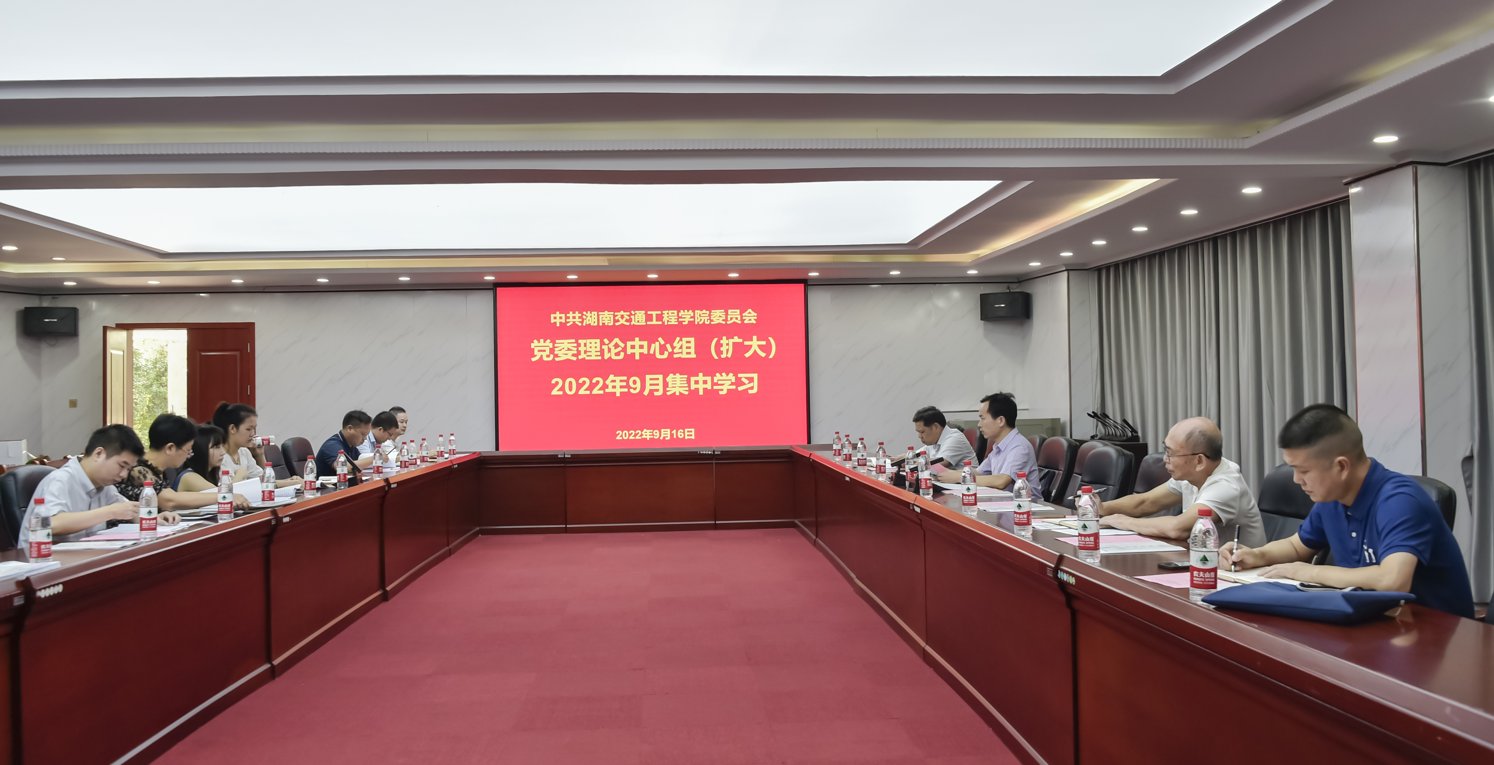 本网讯(记者 赵红深 摄影 李建华 )9月16日上午,学校党委理论学习中心组(扩大)在体育馆103会议室举行集中学习活动,专题学习贯彻《习近平谈治国理政》第四卷和习近平总书记在省部级主要领导干部专题研讨班上的重要讲话精神。校党委书记刘文君主持会议并领学,校党委委员、纪委、党务部门负责人,各二级党组织书记参加学习。