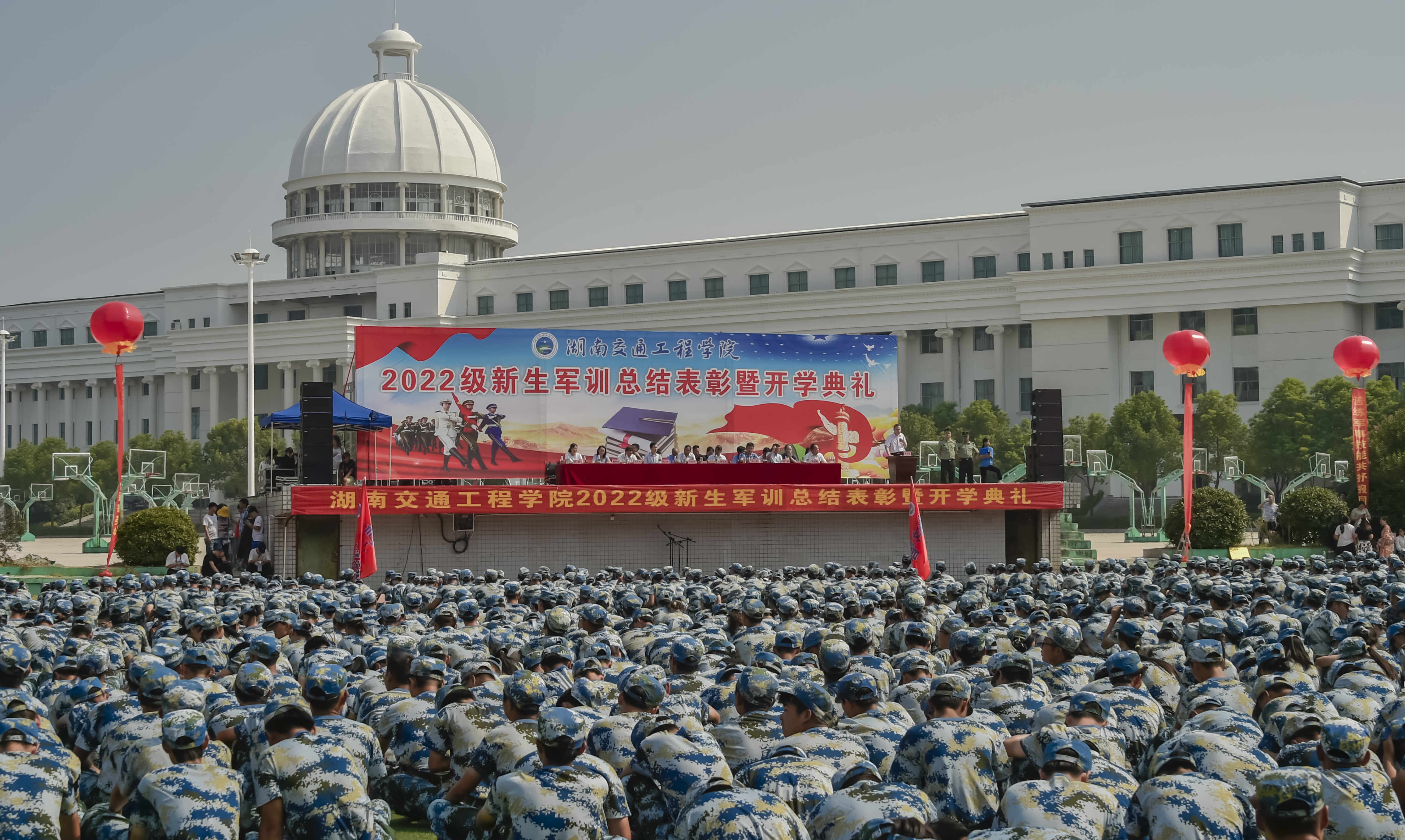 随着军训指挥员的一声口令,参加军训的2022级新生进行军事训练汇报表演,展示19天的军训成果。运动场内外一片恢弘之势,一场智慧与毅力相互碰撞的盛宴在交工院校园上演。