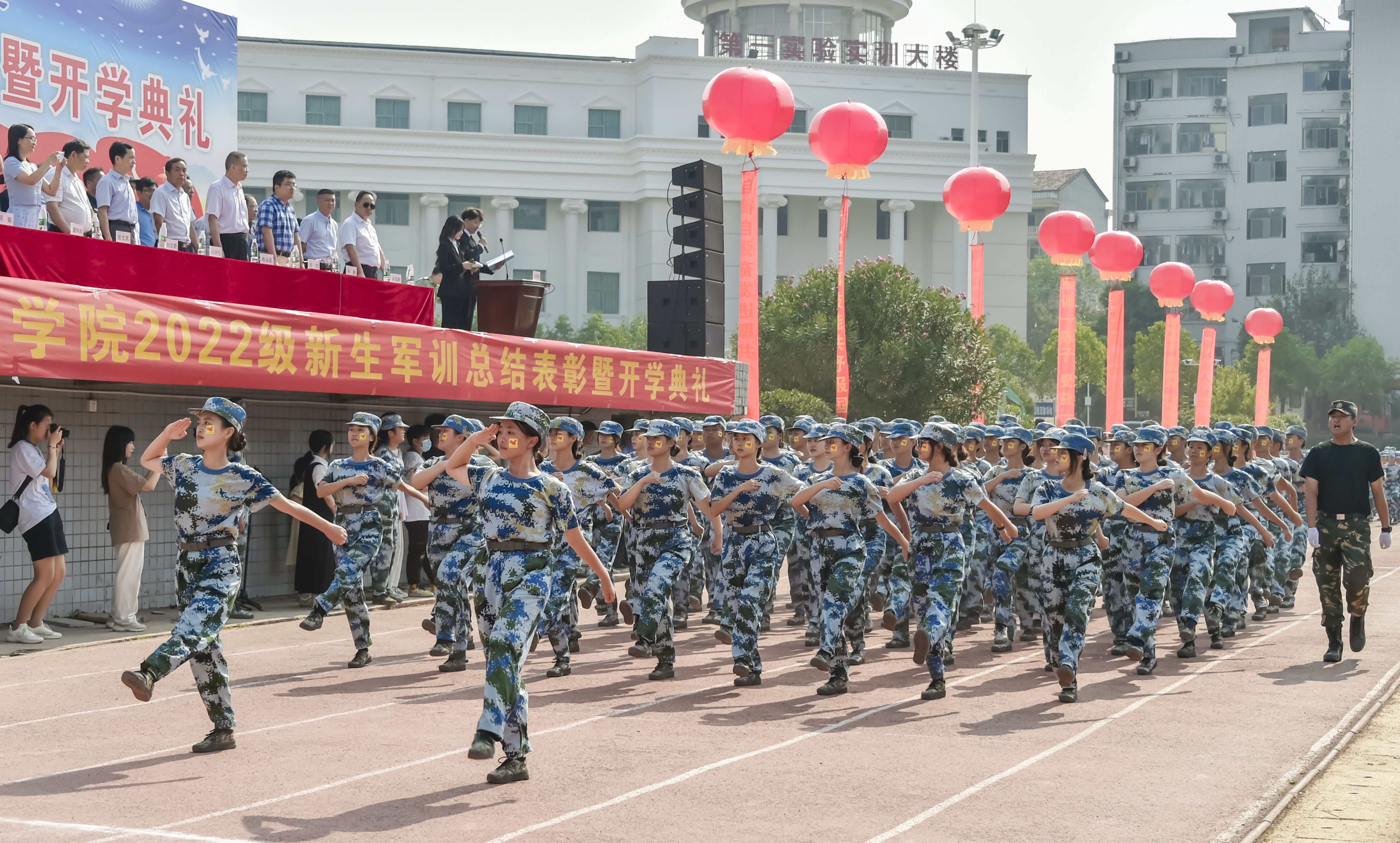 本网讯(记者 赵红深,摄影 李建华)金秋九月,秋高气爽,丹桂飘香。经过19天的艰苦训练,2022级新生圆满完成了军训任务。9月17日上午,学校在田径运动场隆重举行2022级新生军训成果汇报表彰大会暨开学典礼。董事长刘福生、校长陈治亚、党委书记刘文君、执行校长刘杰、常务副校长彭文武、纪委书记刘毅、副校长余孟辉、董事董晔卉、党委委员邓丽出席。相关职能处室负责人,各二级学院院长、党总支书记(副书记),全体教官、辅导员和教师代表以及近4000名2022级新生参加了典礼。典礼由刘杰主持。