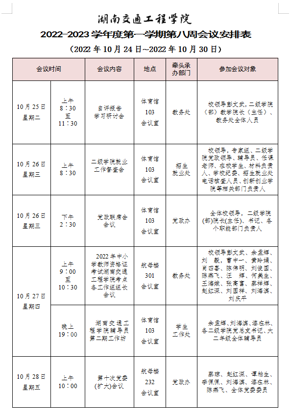 新葡萄8883官网AMG官网2022-2023学年度第一学期第九周会议安排表