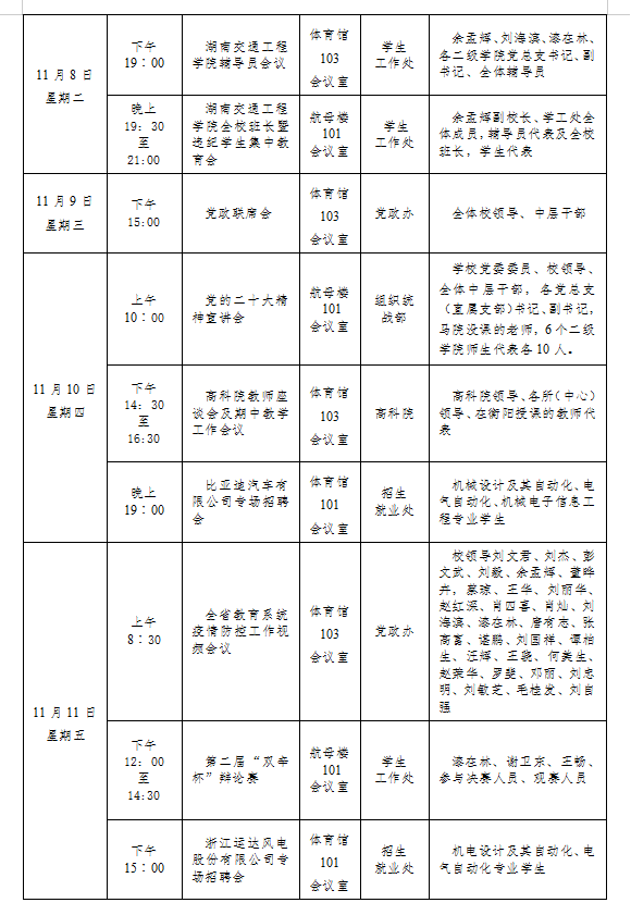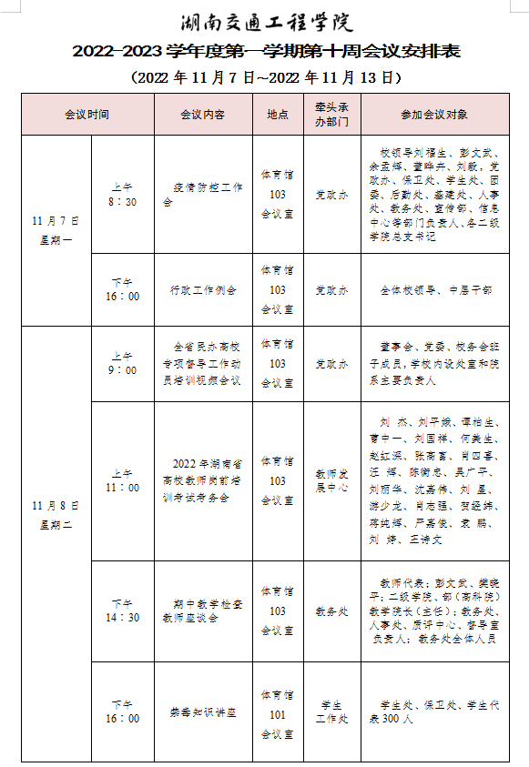 新葡萄8883官网AMG官网2022-2023学年度第一学期第九周会议安排表
