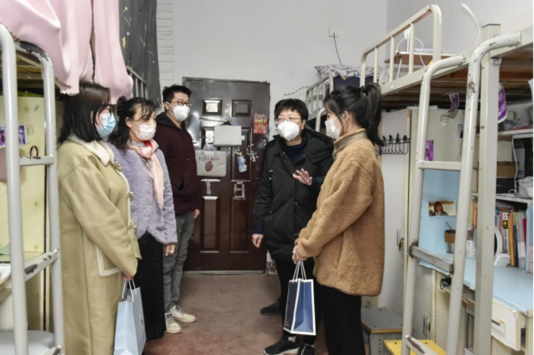 该校人文与艺术学院党总支书记刘敏芝带领学院领导、毕业班辅导员来到学生宿舍和学校图书馆,为2023届考研学子代表送上慰问大礼包。一行人与学子亲切交谈,传授学习方法,询问他们的学习及身体近况,叮嘱大家一定要劳逸结合,保持良好的身体健康与生活节奏,放平心态,以最好的精神面貌迎接考试。