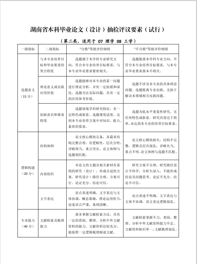 《湖南省本科毕业论文(设计)抽检实施细则(试行)(征求意见稿)》.pdf