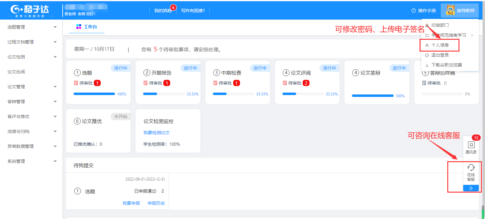 1.工作台:在【工作台】界面,可查看所有过程文档审批情况