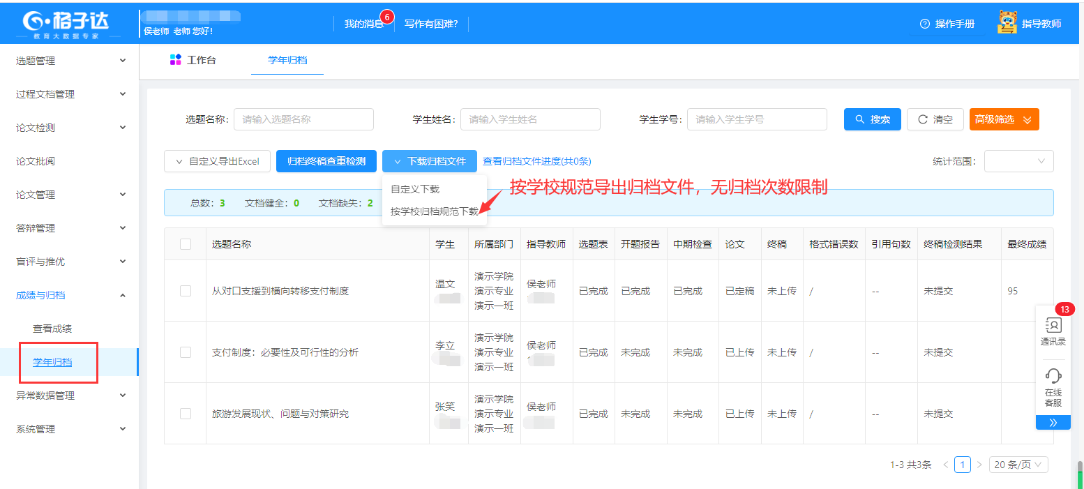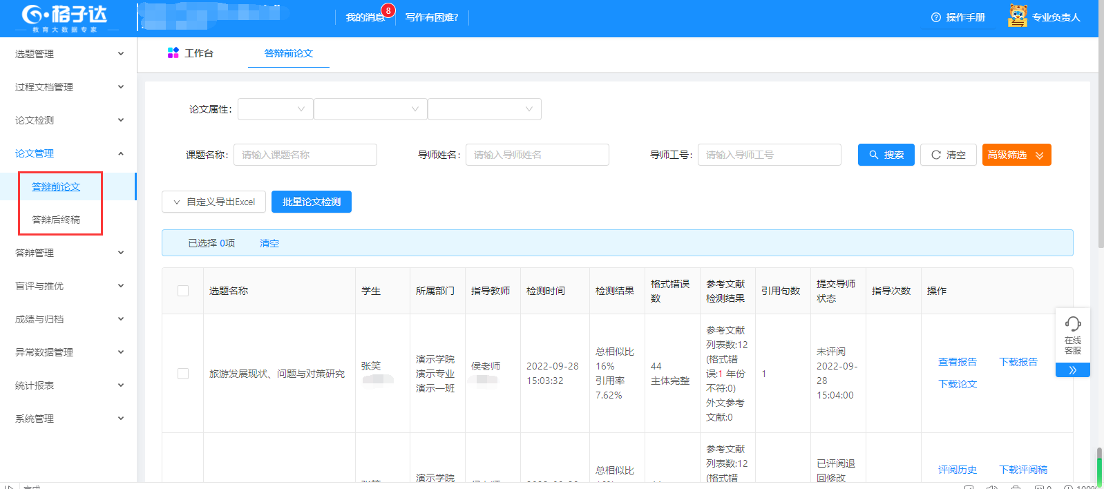 3.任务书/开题报告/中期检查/过程指导记录:可查看相关内容。