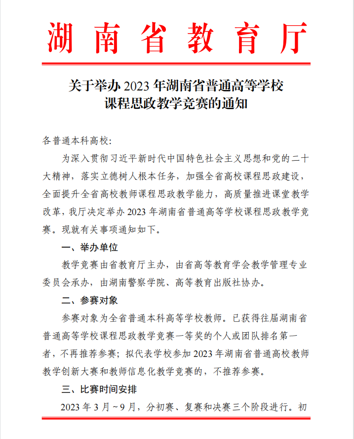 (转发)关于举办2023年湖南省普通高等学校课程思政教学竞赛的通知