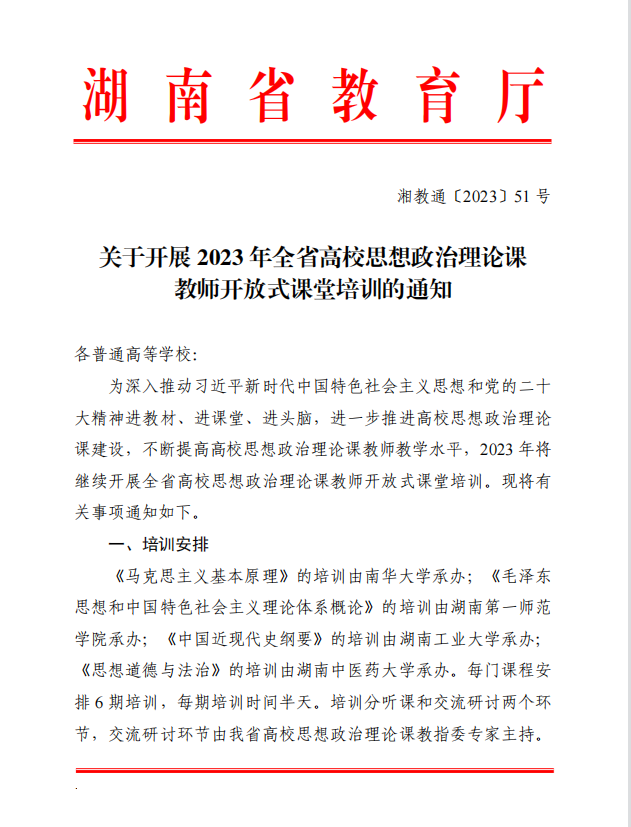 下一篇 :(转)关于开展 2023 年全省高校思想政治理论课 教师开放式课堂培训的通知