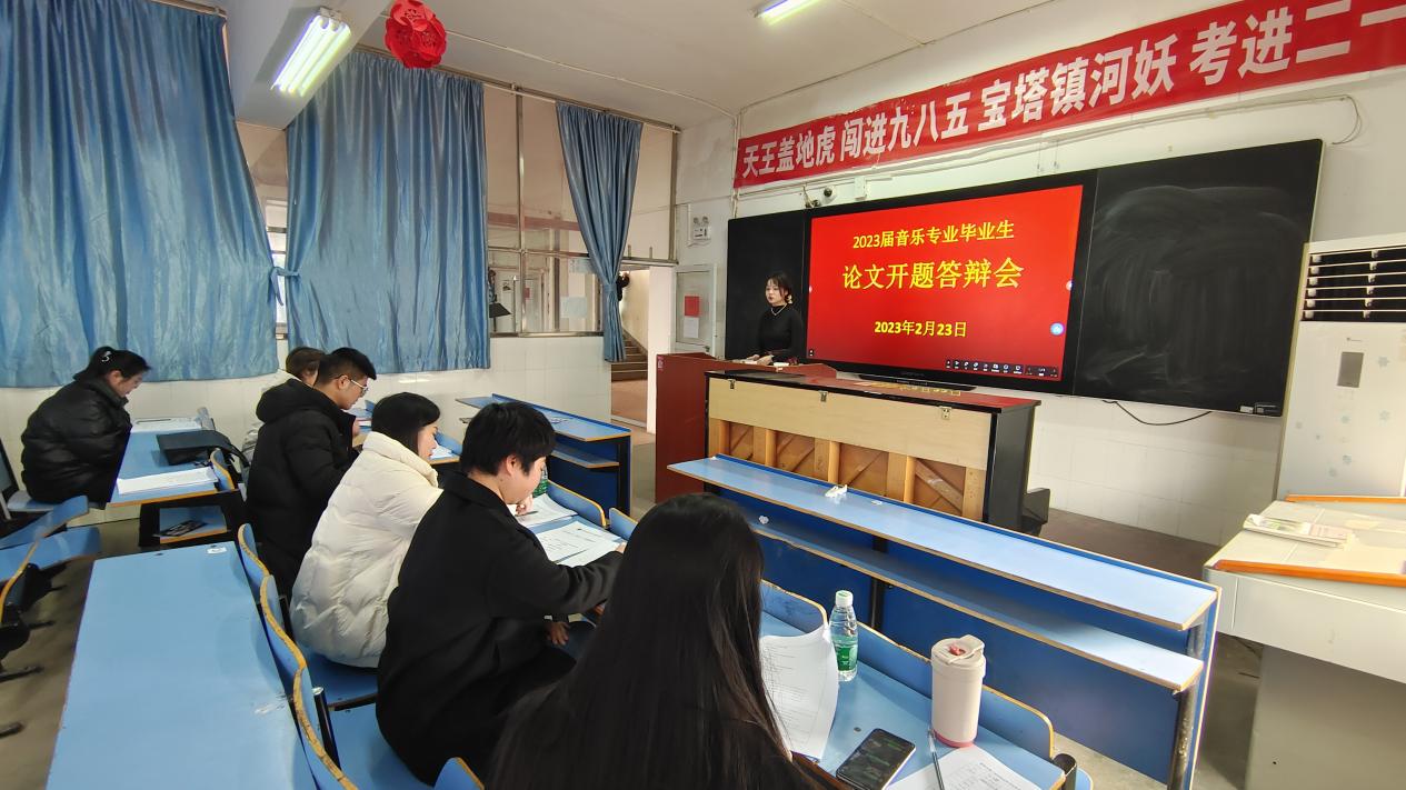 2023年2月23日下午,人文与艺术学院在机电楼6楼进行2023届音乐专业毕业生论文开题答辩工作,参加答辩的总人数为392人。本次答辩共设立13个答辩室,每个答辩室配备5位评委。除个别已经落实工作的毕业生在岗位上申请了网络答辩以外,其他毕业生均参加了现场答辩。