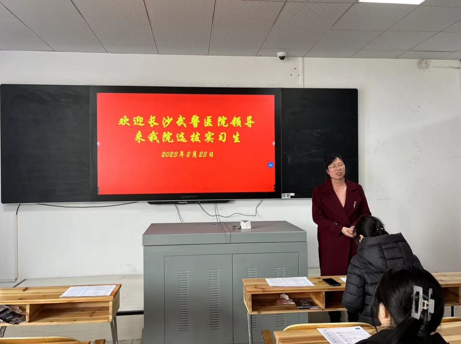 2023年2月22至23日,解放军联勤保障部队第924医院、长沙武警部队医院、南部战区总医院老师分别来我院进行实习生面试选拔工作。护理系20级本科及21级专科实习班级参加此次面试,医护学院院长陈熙、书记邓丽、实习专干老师万灵辉及各医院助理组织面试选拔。