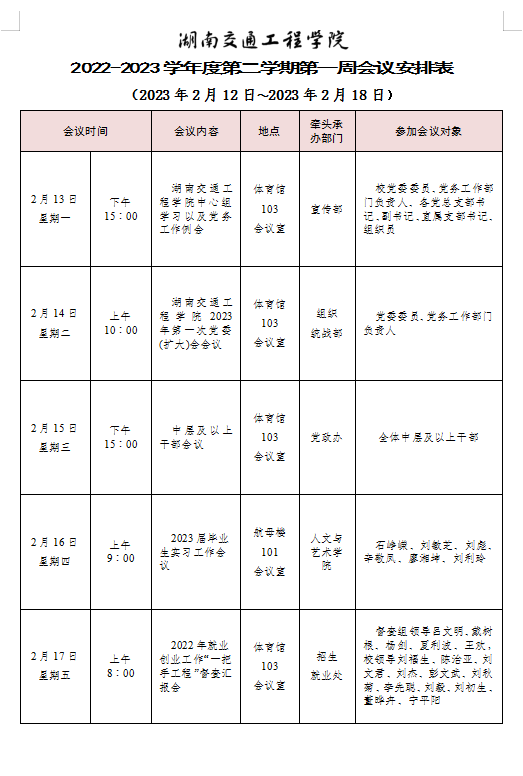 新葡萄8883官网AMG官网 2022-2023学年度第二学期第二周会议安排表