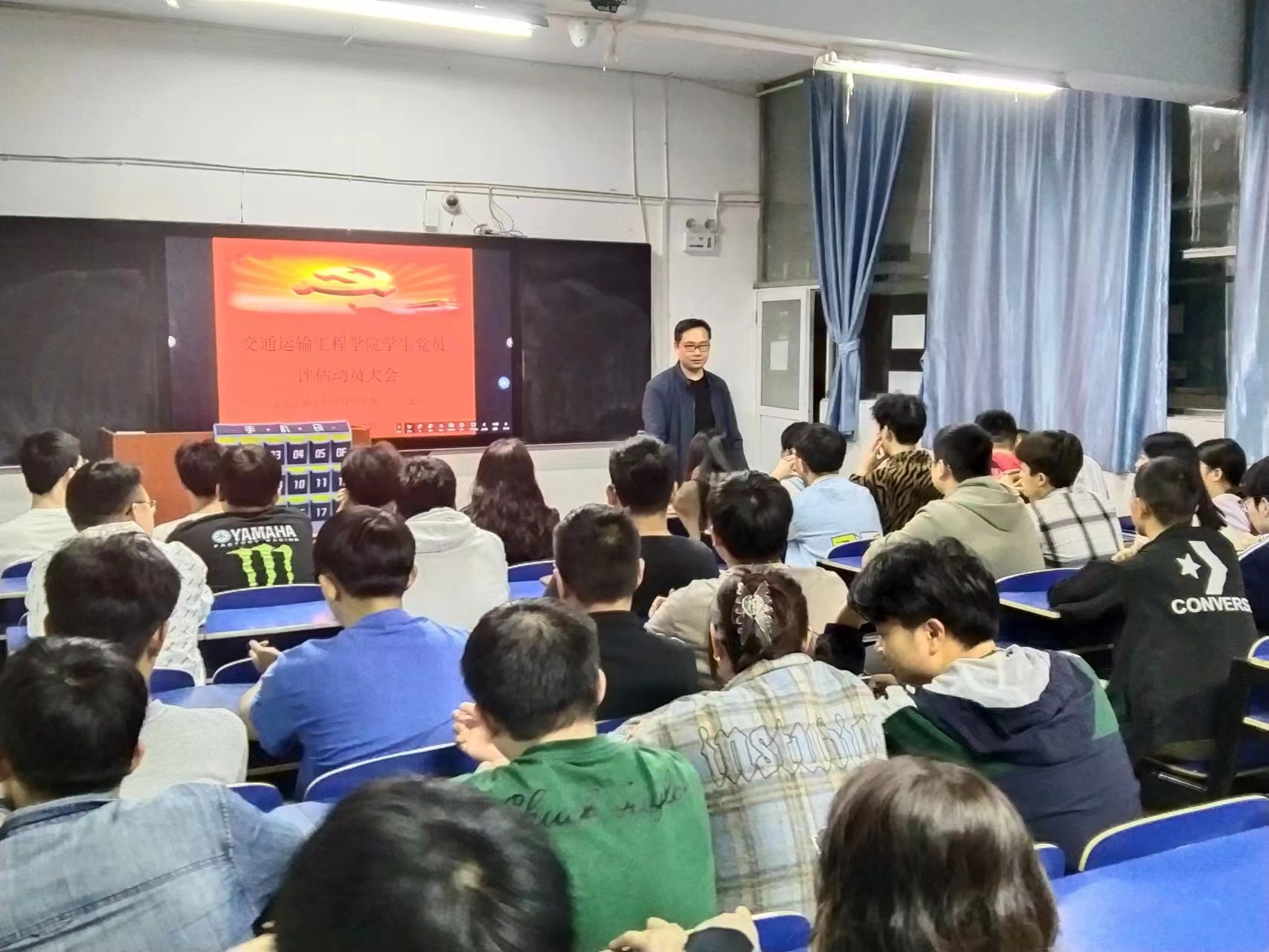 2023年4月10日晚上19:30,交通运输工程学院学生第一、第二党支部在机电楼602教室召开学生党员评冲刺估再动员大会。党总支书记何美生出席会议并发表讲话。会议由学生第一支部书记王刚主持。党总支副书记何文华、学生第二支部书记鲁维军、全体预备党员参加会议。