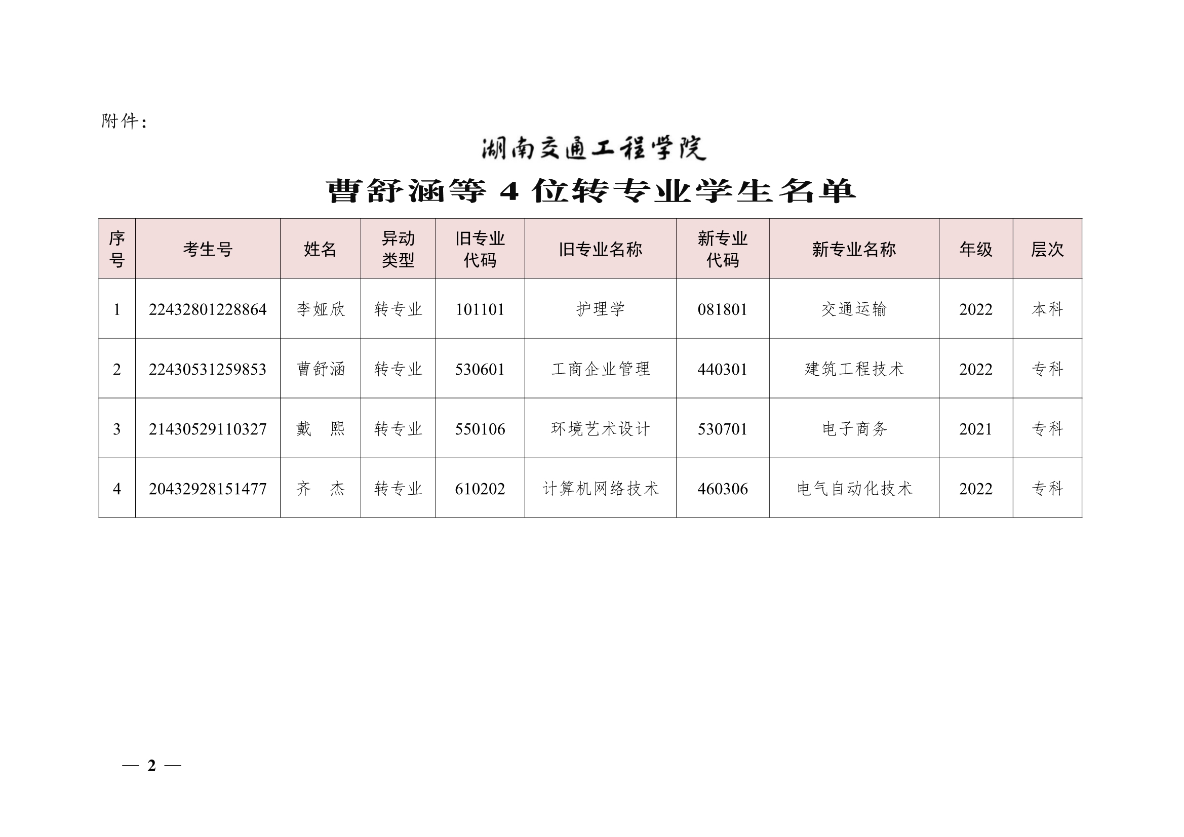 关于同意李娅欣等4位同学转专业的决定(湘交院学管〔2023〕15号)