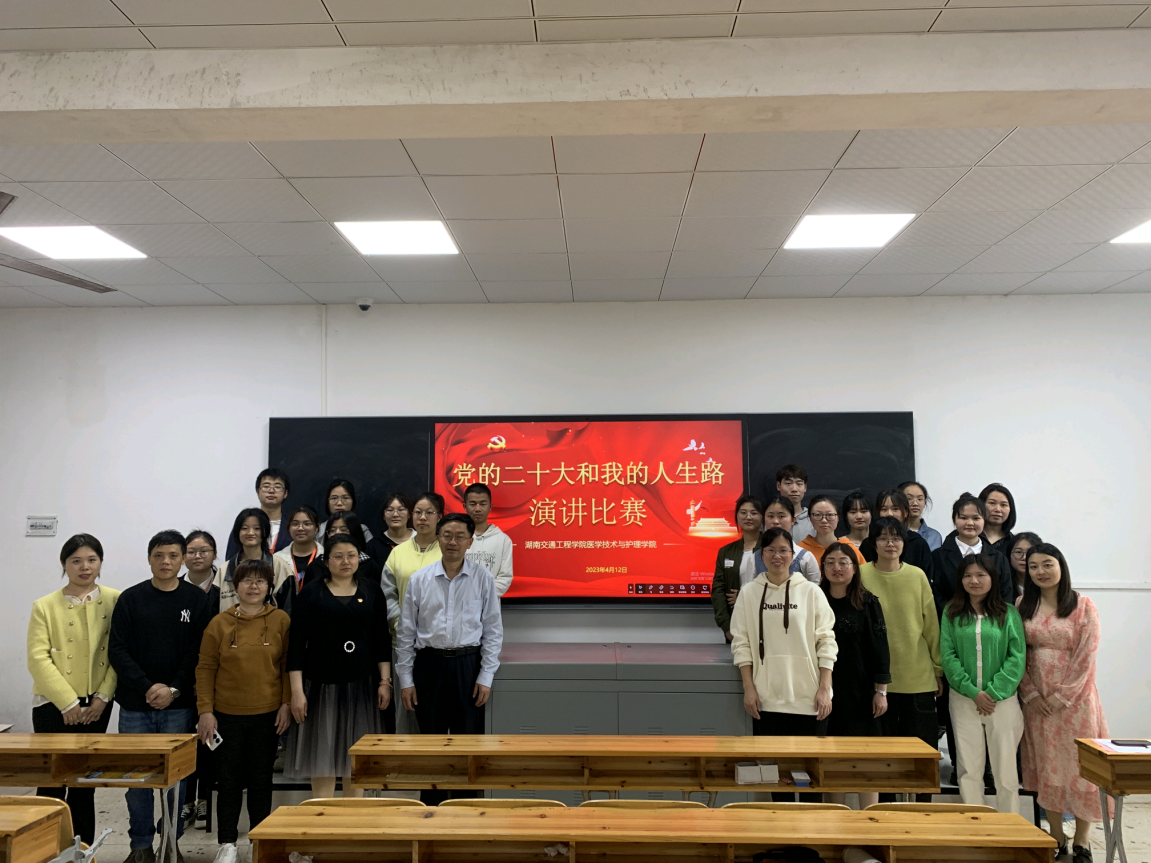 盛世迎盛会,奋进向未来。为深入贯彻学习宣传党的二十大精神,将青年之人生路与国家之发展紧密联系,引领当代青年永远跟党走,奋进新征程,医学技术与护理学院近期开展了以“党的二十大和我的人生路”为主题的演讲比赛。莅临本次大赛的领导老师有医学技术与护理学院党政班子和各班辅导员。