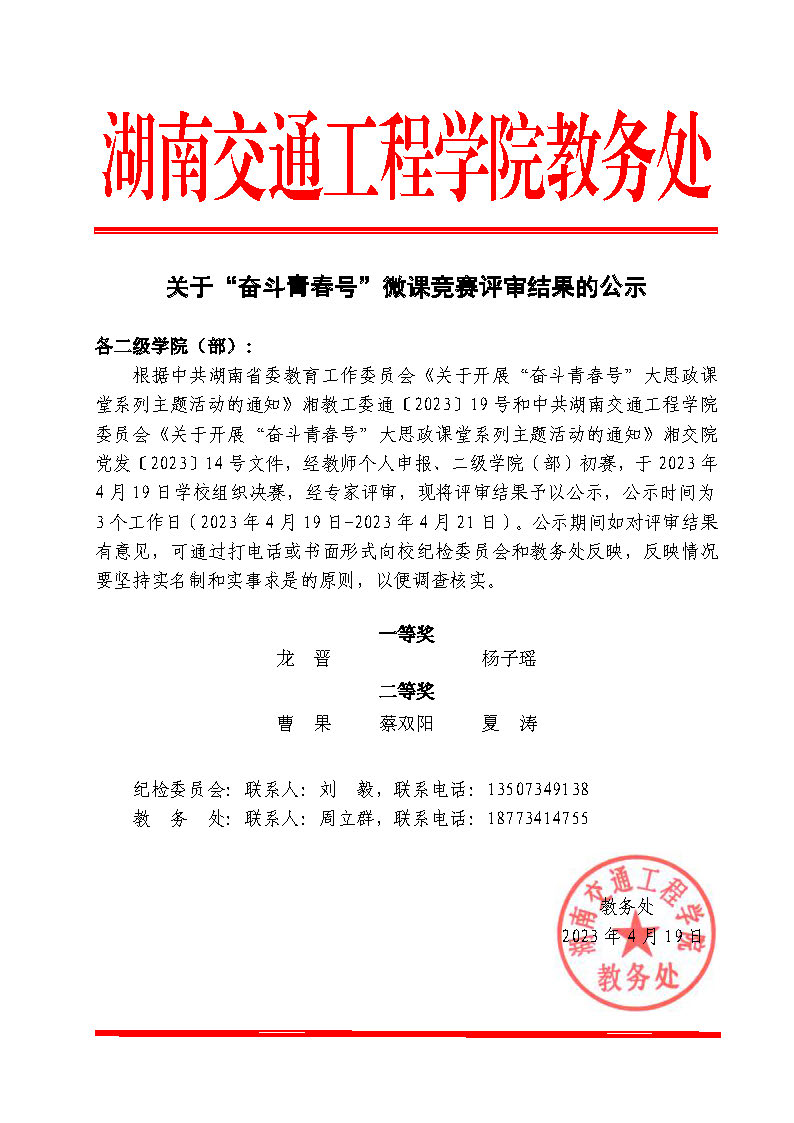 关于“奋斗青春号”微课竞赛评审结果的公示