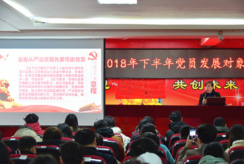 本网讯(通讯员摄影麻珂)12月8日上午,新葡萄2018年下半年党员发展对象开班典礼在体育馆101会议大厅举行,党委书记苏玲,党委副书记李先聪,党委委员、党务工作部副部长邓丽,党委宣传部副部长李建华出席开班典礼,近200名党员发展对象参加开班仪式。李先聪主持会议。 会上,苏玲书记作培训动员讲话,向参训学员提出了三点要求,一是要提高认识。在座的参训学员都是从入党积极分子培训班中脱颖而出的先进分子,怀揣着美好的追求和强烈的入党愿望参加此次培训班,要提高政治学习意识,高度重视这次党课培训,在思想上不能有半点怠慢和马虎。二是要正确对待。做到身到心到情到,不能随意请假,更不能无故缺席,对党的理论路线方针政策要有情感认同,做到爱党忧党兴党护党,时刻以一个党员标准严格要求自己。三是要取得实效。结合国家时事、社会实际、个人自身现实条件对照党章条款,真学真信真用,学懂弄通悟透,做到熟知理论观点、掌握主要内容、了解基本要求,注重理论联系实践,真正使自己成为一个有道德、讲品行的时代新人。 开班典礼后,苏玲书记以《深入学习新党章,巩固树立党章意识》为题给参训学员上了一堂内涵丰富、精彩生动的党课,从党章的概述、历次党代会党章的修订历程到十九大新党章的修订内容进行了详细讲解和深入剖析。讲课中,苏玲书记理论联系实际,运用党的理论和生活中的鲜活案例,对党的理论知识进行了生动解读,加深了在座党员发展对象对修订党章的新内容新要求的理解与掌握,强化党员党章意识,动员和激励全体党员发展对象继承和发扬党的优良传统和作风,为参训学员在今后的学习工作中更好的遵守党章党纪党规、履行党员义务、发挥党员先锋模范作用打下了坚实的思想基础。 苏玲书记的讲课,深入浅出,旁征博引,使参训学员对新党章所蕴含的丰富内容有了全新的理解和把握,对党章的丰富完善和发展历程有了全方位的了解和掌握,进一步激发了全体学员研读学习党的基本理论知识的热情,对学员端正入党动机、锤炼党性修养、牢记党的宗旨、坚定理想信念、牢记初心使命、争当时代新人起到了巨大的激励和推动作用。学员们纷纷表示,在以后的学习生活中,要努力做到在思想上入党,时刻以党员的标准严格要求自己,听党话,跟党走,争取早日踏进党组织的大门。(责任编辑李建华)  |