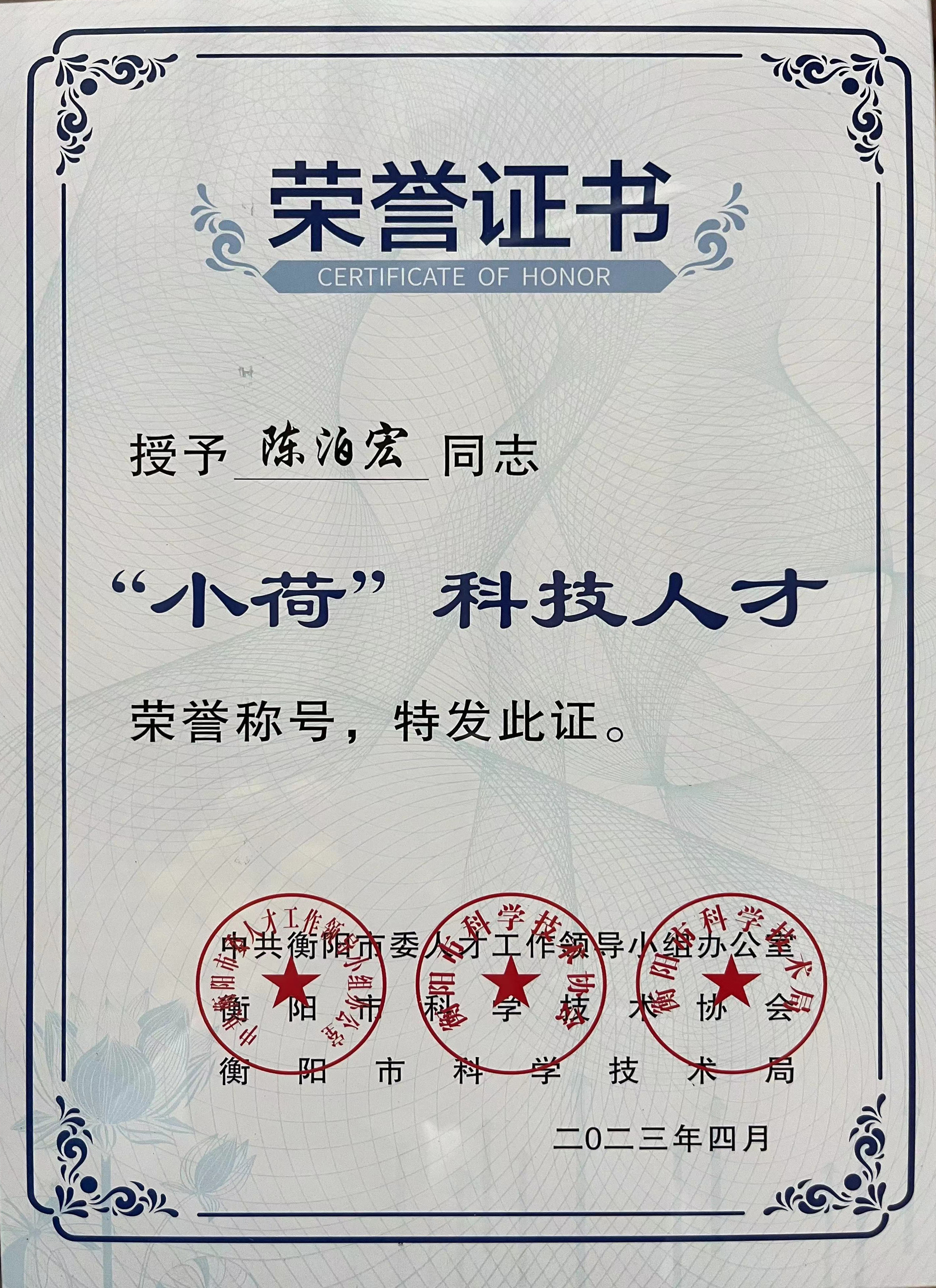 本网讯(记者 赵红深)4月28日,衡阳市科协召开第十一次代表大会, 省科协党组书记、常务副主席王瑰曙,市委书记刘越高出席开幕式并分别讲话,市委副书记、市长朱健主持开幕式。大会表彰了衡阳市首届22名优秀科技工作者和24名“小荷”科技人才,新葡萄机电工程学院青年教师陈泊宏喜获衡阳市首届“小荷”科技人才表彰。这是新葡萄首位获此殊荣的教师,并被衡阳市推荐参加湖南省科技人才托举计划。