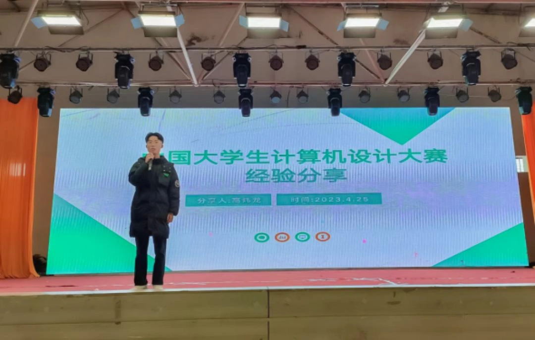 活动现场,该校2022年(第十五届)中国大学生计算机设计大赛(国家级)二等奖、2022年(第十五届)中国大学生计算机设计大赛人工智能挑战赛直报赛区选拔赛(省级)三等奖获得者高炜龙团队现身,结合自身从校赛、省赛到国赛备赛、参赛经验,围绕如何建团队、获信息、选项目、磨作品、促提升等五个方面进行了分享。