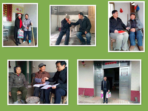 与市直扶贫工作队、群峰村干部进行简短的对接交流询问座谈以后,新葡萄扶贫工作队成员马不停蹄急不可待地分头直奔8个结对贫困户,他们一个个肩扛精装大米,手提木耳蘑菇红枣等,顶着寒风,冒着冷雨,行走在田间地头,将党和政府的温暖关爱及时送到乡亲们的手里。