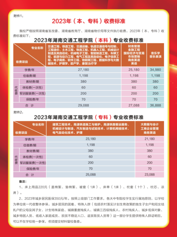 新葡萄8883官网AMG官网2023年本、专科招生专业收费标准