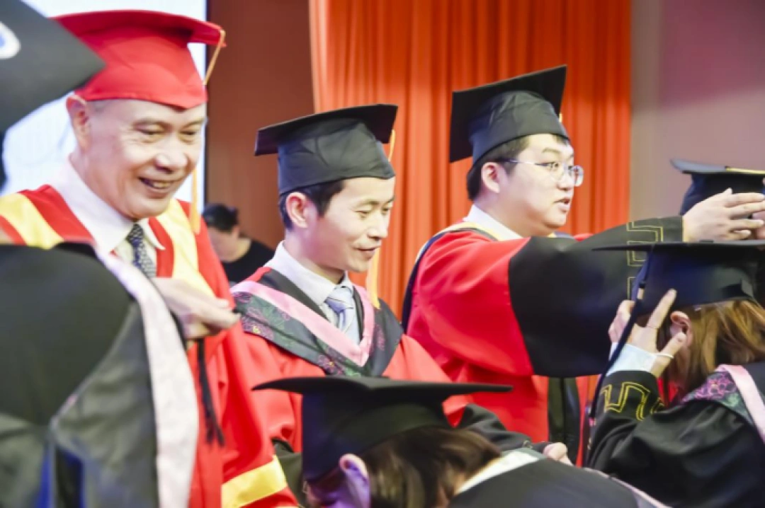 校领导、学位授予导师为2023届毕业生颁发学士学位证书、拨穗正冠,并与他们合影留念。全校党委委员、校领导,相关职能部门、各二级学院负责人,全体学生辅导员,各学院教师代表参加典礼。部分校友、家长、未到场的毕业生通过在线直播观看典礼。