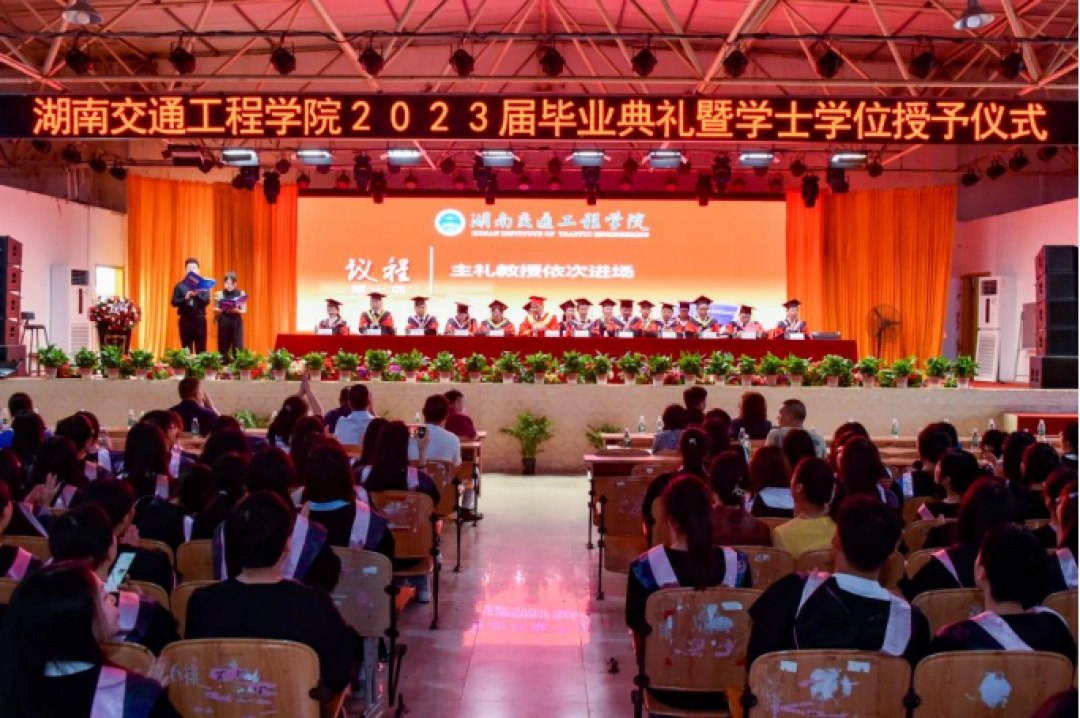 校长陈治亚以《想家国之事,担家国之责,揣青春之梦,做大写之人》为题代表学校深情致词,向毕业生们表达美好的祝愿和真诚的祝福,寄语莘莘学子,既有仰望星空的豪情,也有脚踏实地的淡定;常务副校长彭文武宣读《关于准予文佳乐等2770名2023届本科学生毕业的决定》;副校长余孟辉宣读《关于表彰湖南省普通高等学校2023届优秀毕业生和创新创业优秀毕业生的决定》。