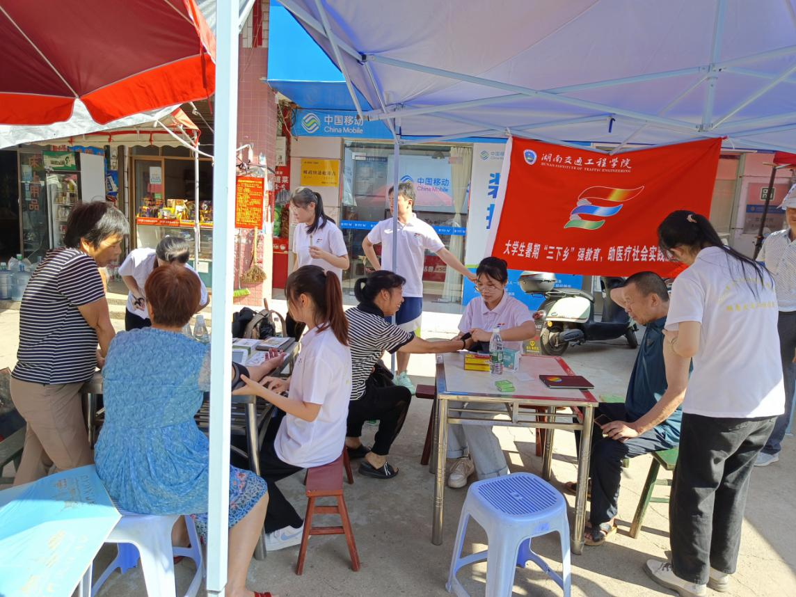 7月7日,新葡萄8883官网AMG官网赴衡南县“强教育、助医疗”社会实践服务10名志愿者到宝盖镇各村进行暑期“三下乡”之科技和医疗卫生服务实践活动。