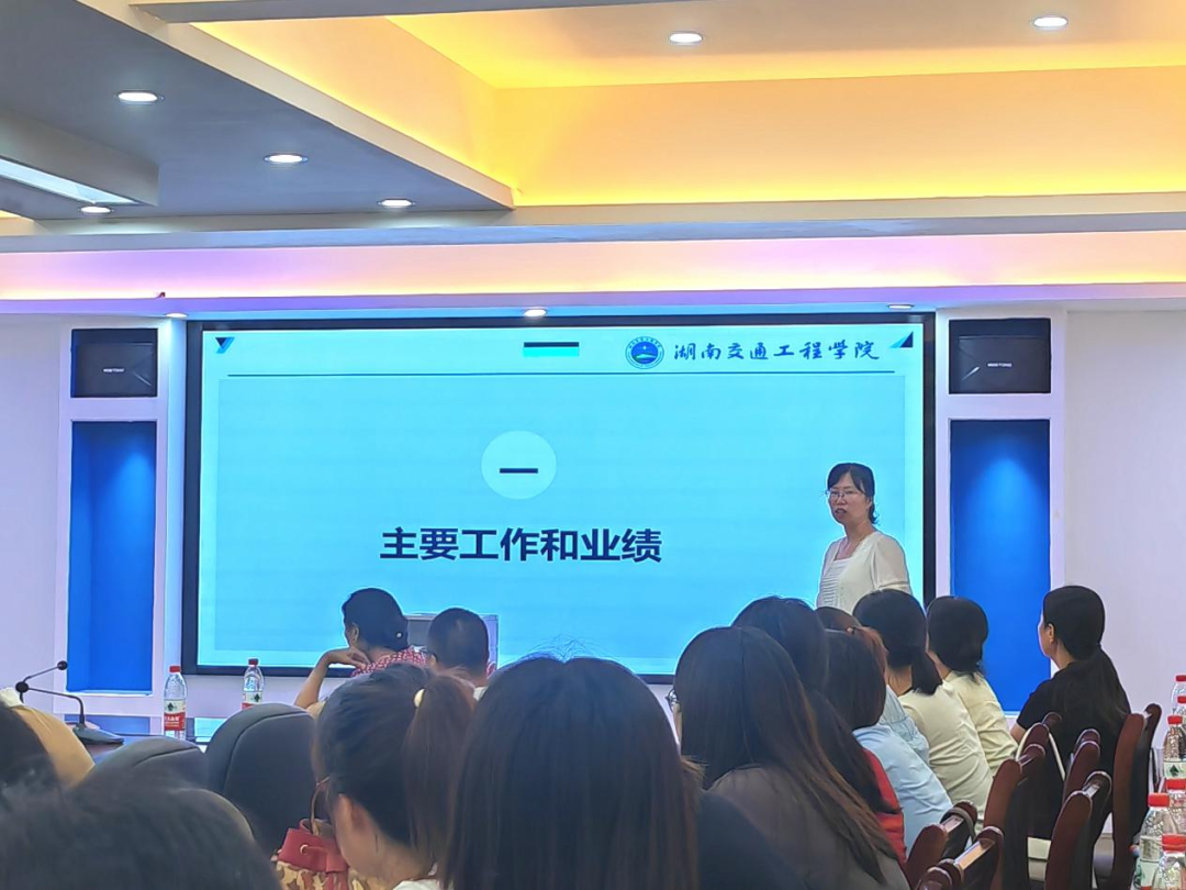 学院党总支书记邓丽就一学年主要工作和业绩、存在的问题和原因以及下一步工作打算三个部分进行工作述职。述职结束后,全体教职工就学院党政领导进行了无记名民主测评。
