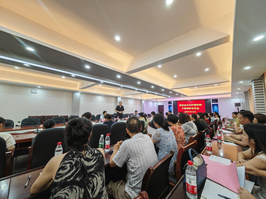为进一步加强学院干部队伍建设,促进学院工作更加科学、高效、规范进行,扎实推动学院高质量发展,根据学校安排,医护学院于2023年8月18日,在护理实训楼二楼会议室进行干部述职考评会。校长陈治亚亚后勤处处长刘国祥,医护学院党政领导班子和学院全体教师参加考评会。