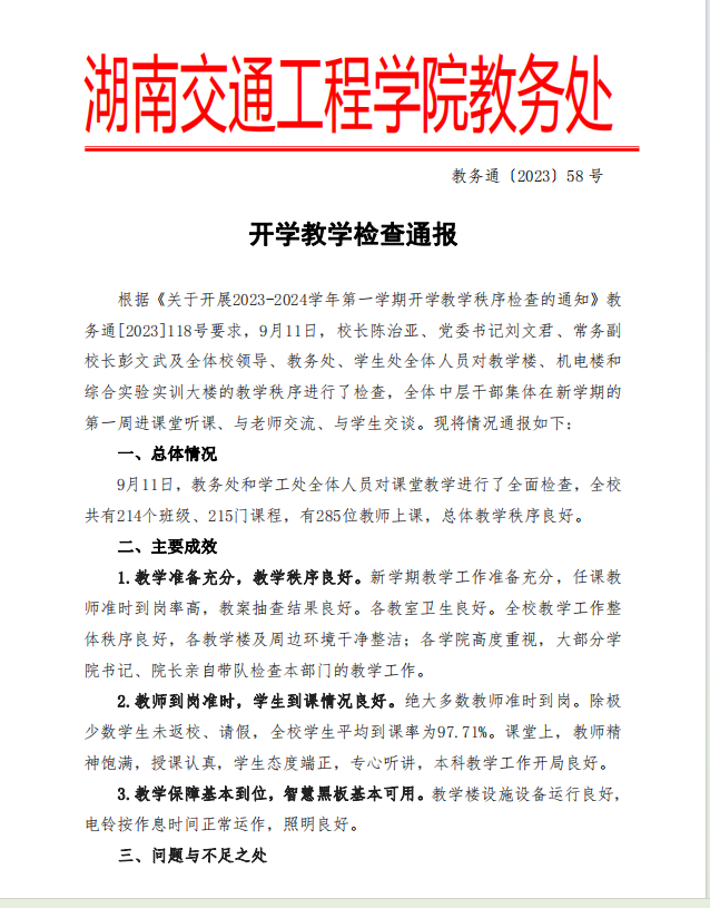 新葡萄8883官网AMG官网2023-2024学年第一学期开学教学秩序检查的通报.pdf
