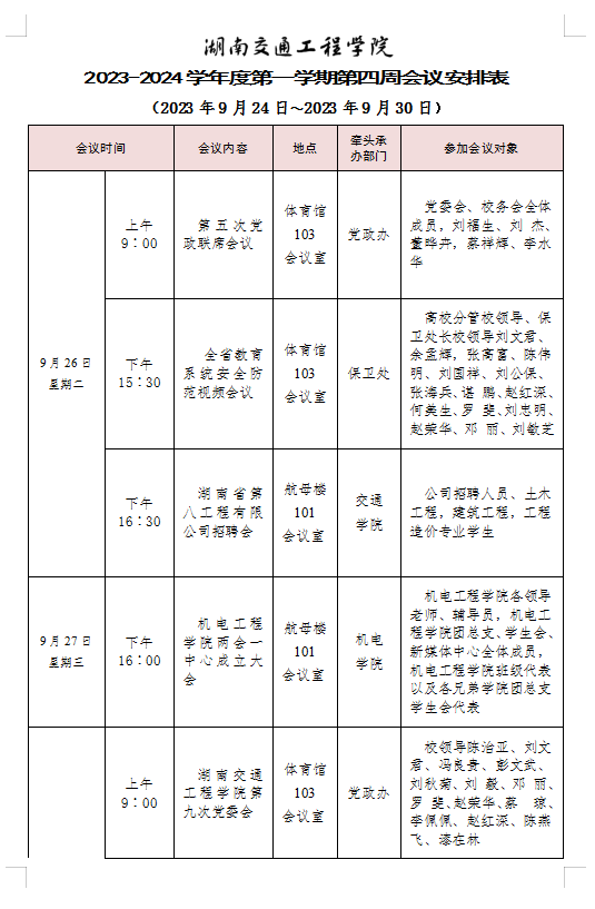 新葡萄8883官网AMG官网2023-2024学年度第一学期第四周会议安排表