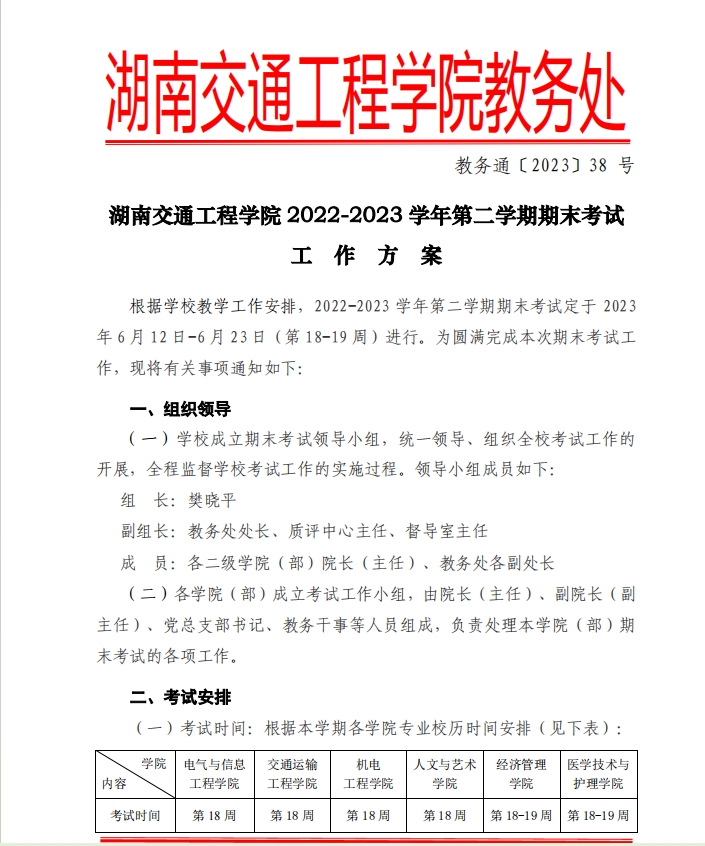 2022-2023学年第二学期期末考试考务工作方案
