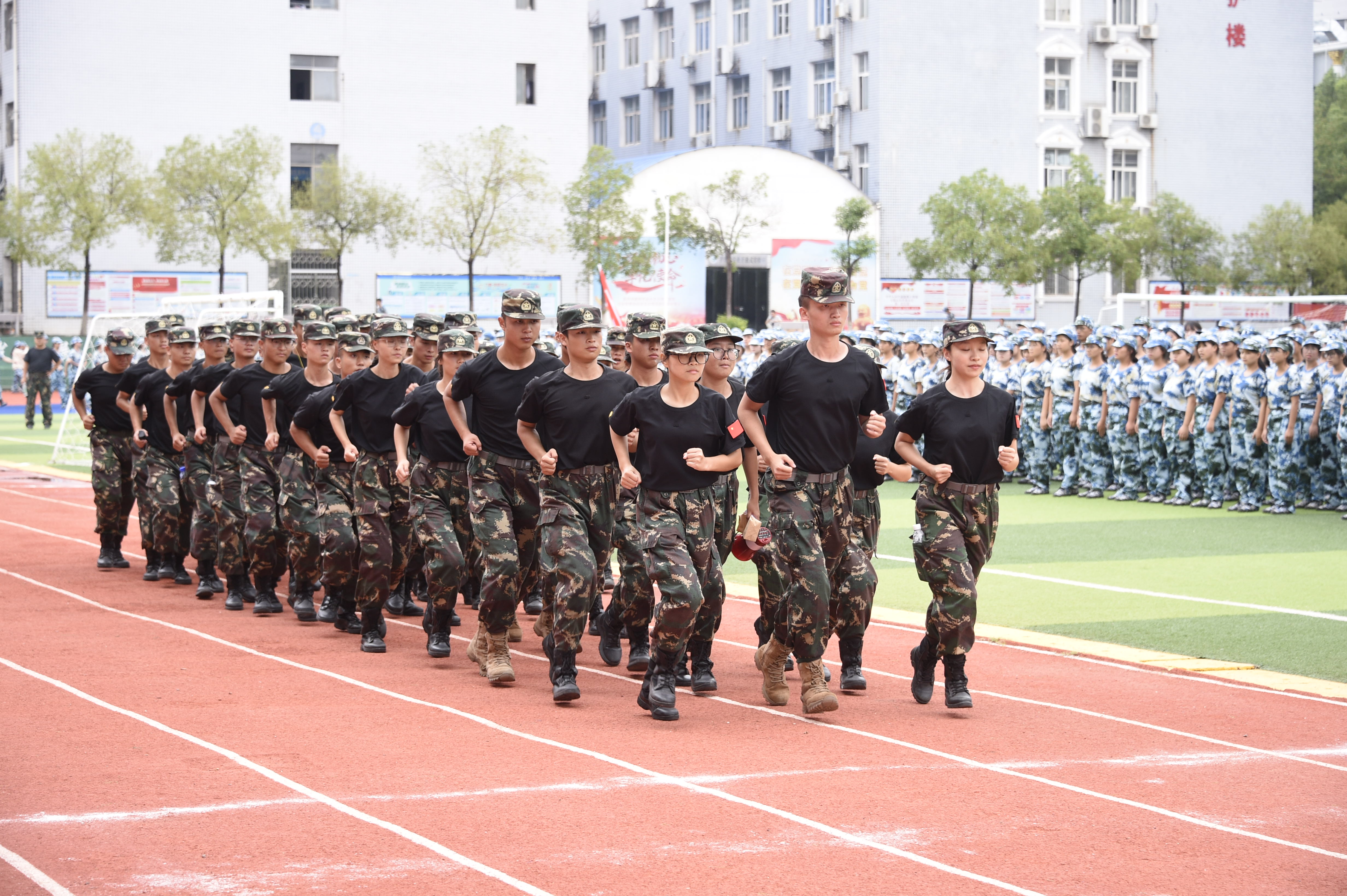 学校高度大学生国防教育,开设了《大学生军事理论》和《军事训练》必修课,依托部队支持建立了“校国旗护卫队”“退役大学生老兵连”和“退役大学生创业工作站”,选拔优秀退役大学生担任军训教员,推进军营文化进校园。
