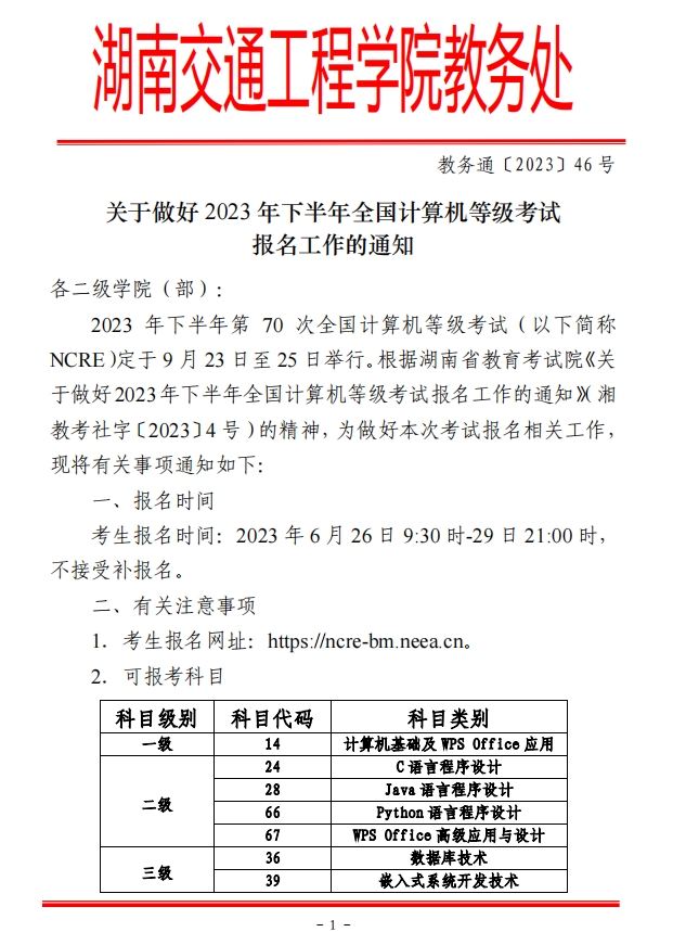 关于做好2023年下半年全国计算机等级考试报名工作的通知